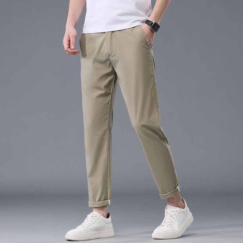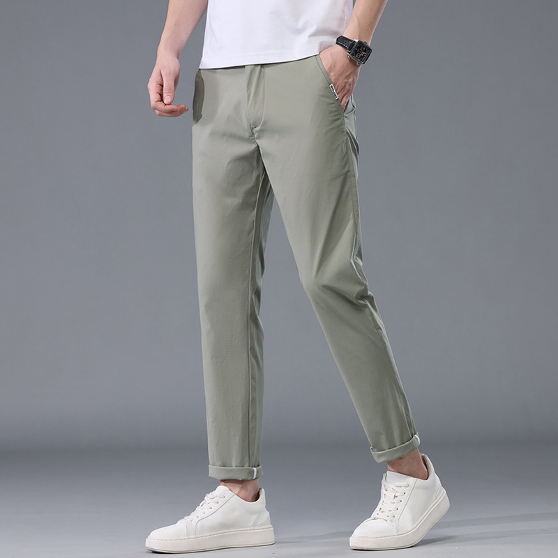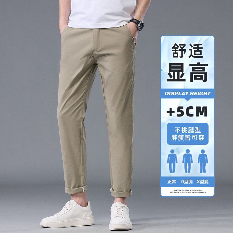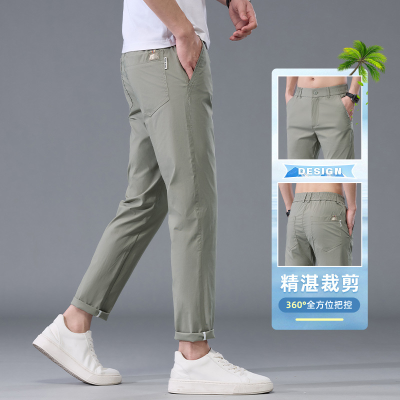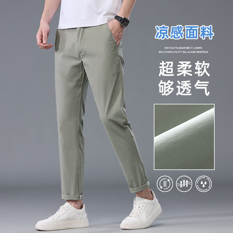 夏季冰丝男士休闲裤薄款直筒宽松裤子夏天新款西裤男裤运动九分裤