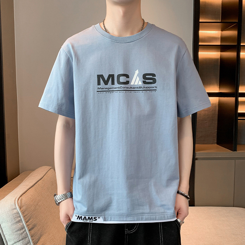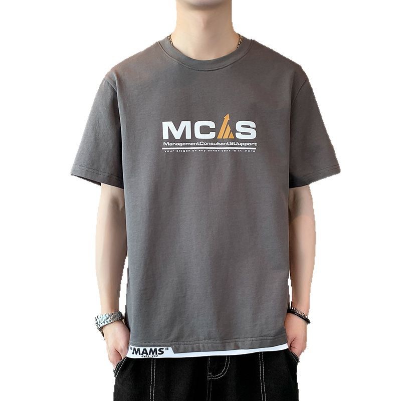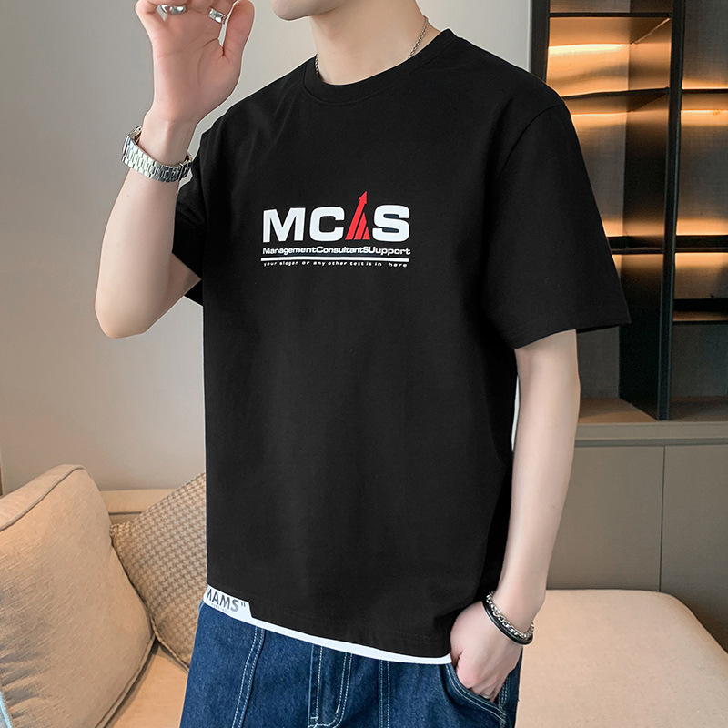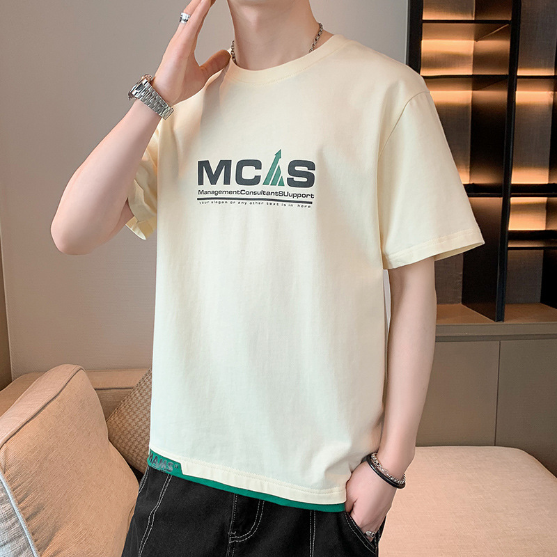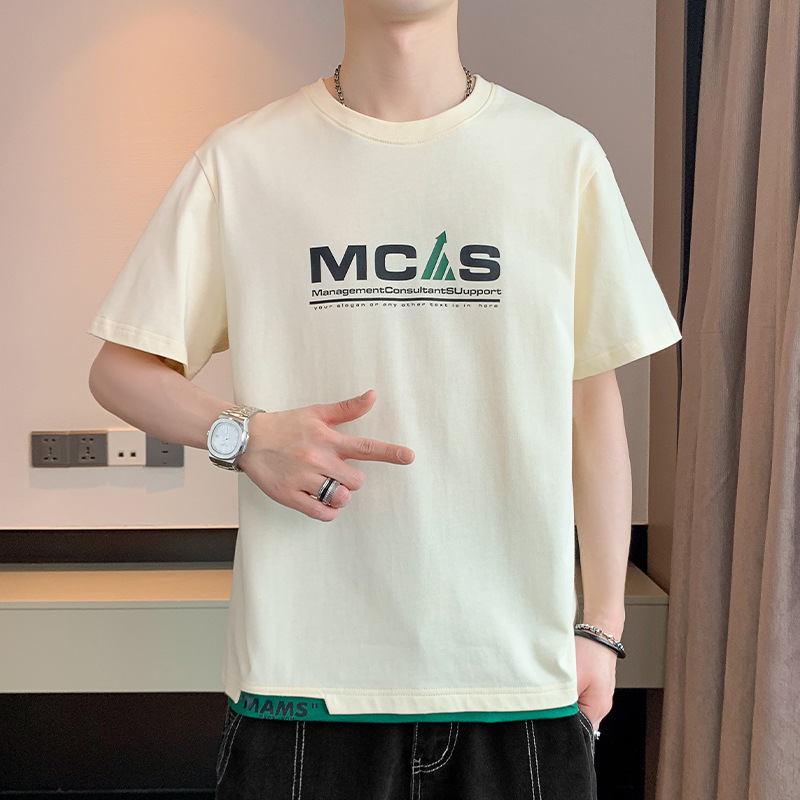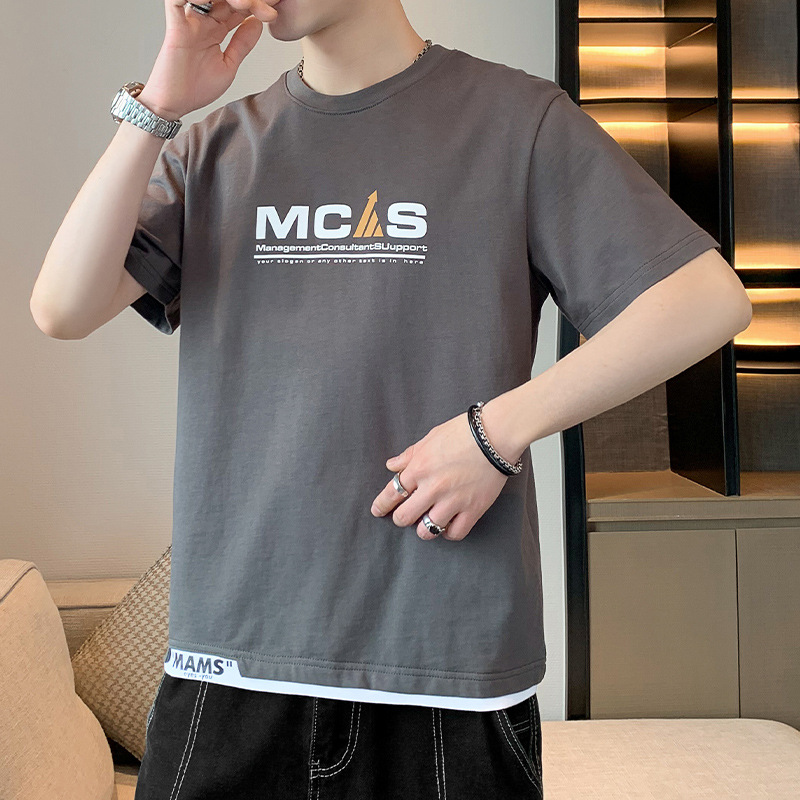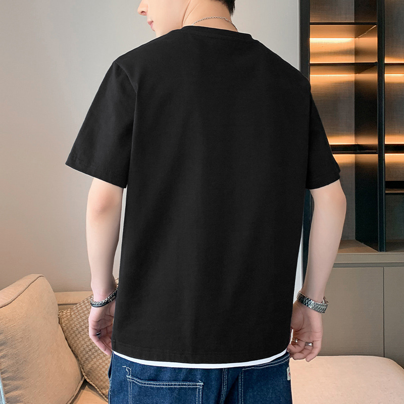 短袖T恤男士夏季潮牌潮流假两件半袖T男款高街体恤休闲上衣服男装