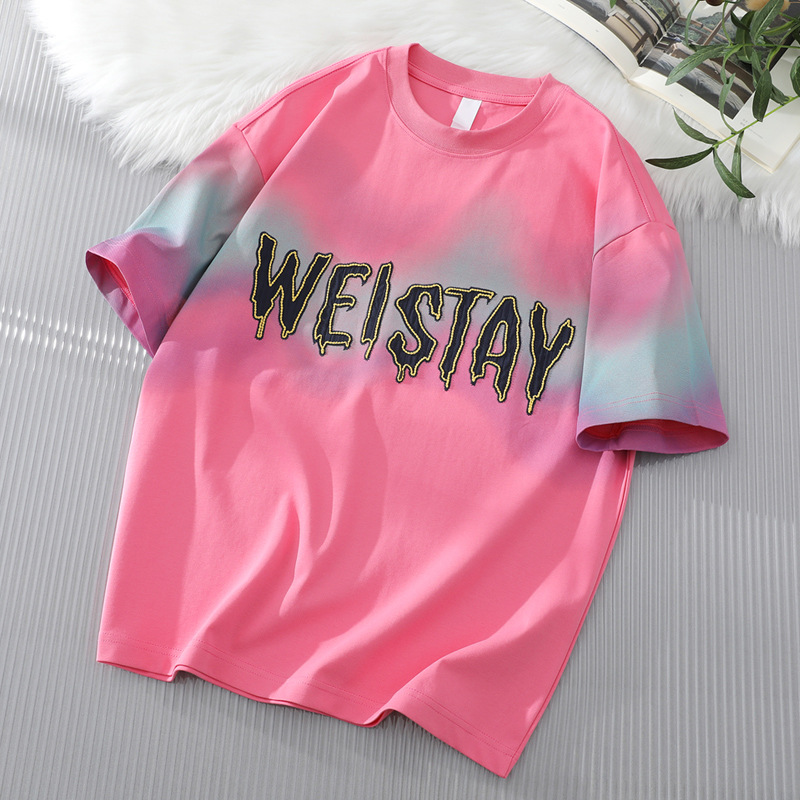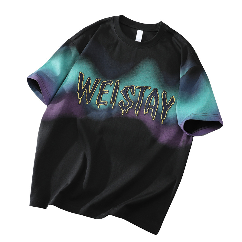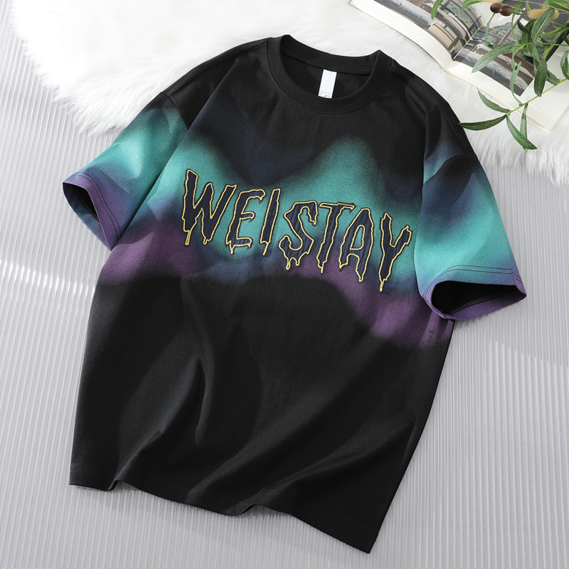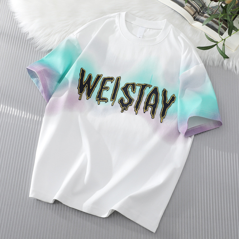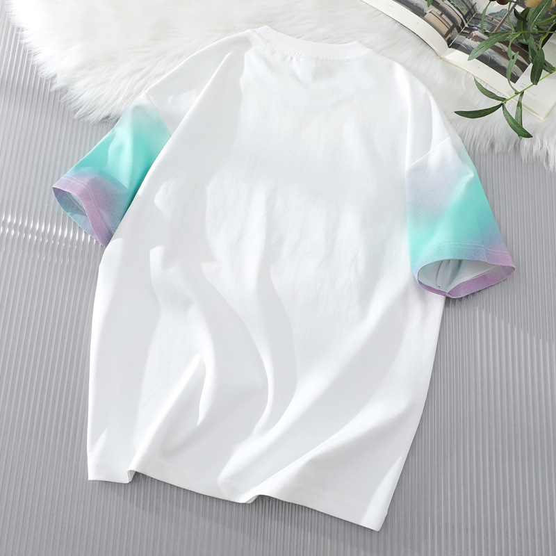 短袖t恤男2025新款夏季五分半袖男潮牌字母印花上衣渐变色体恤衫T