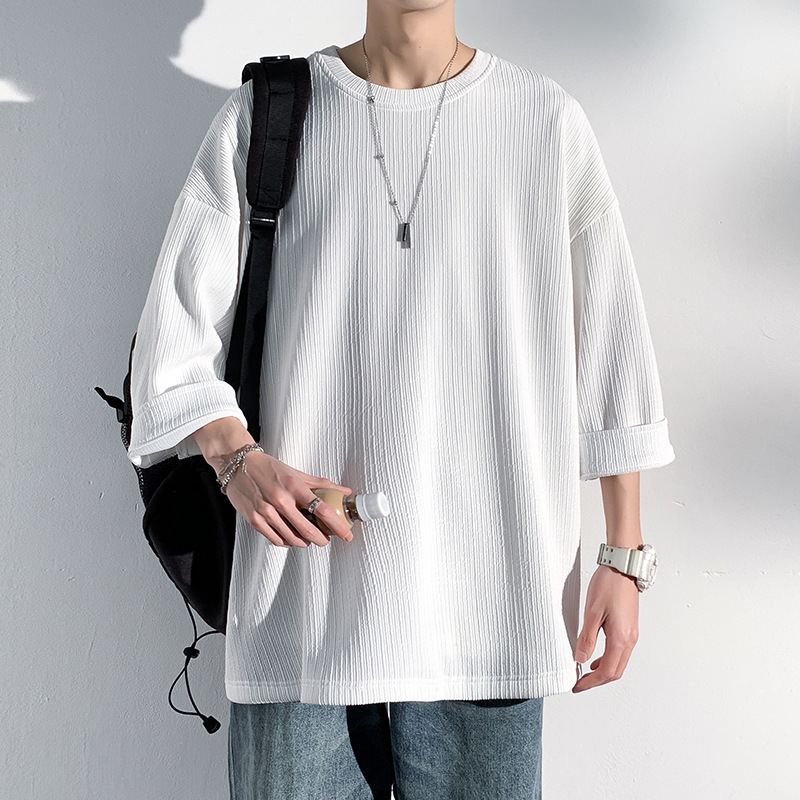 2025夏季新款男士冰丝垂感短袖T恤 潮流时尚圆领宽松大码休闲T恤
