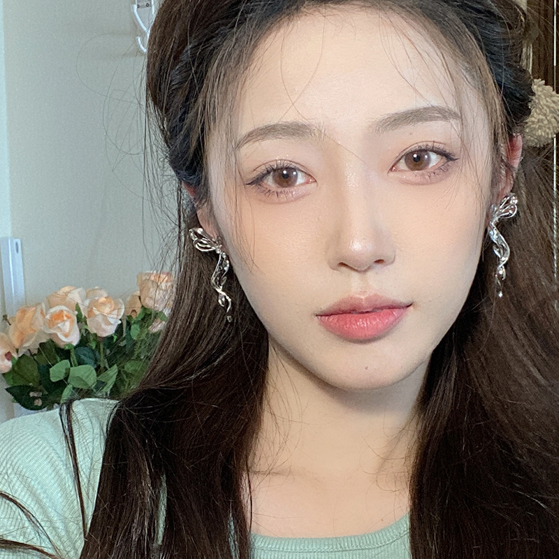 液态金属银色丝带蝴蝶结流苏耳环小众设计感长款翅膀耳钉高级耳饰
