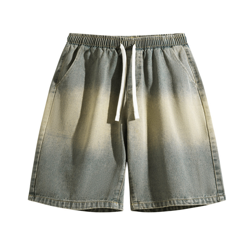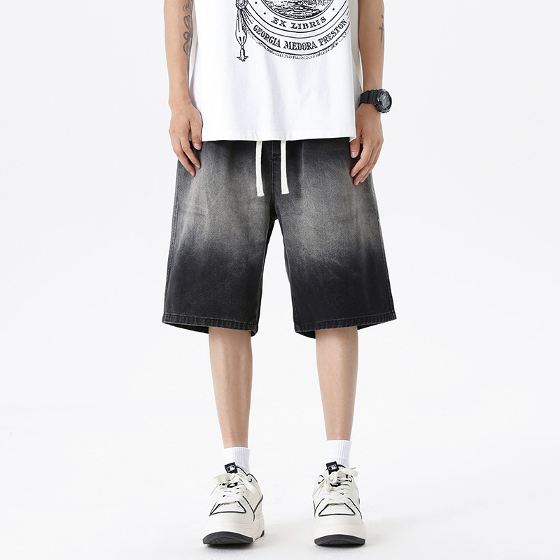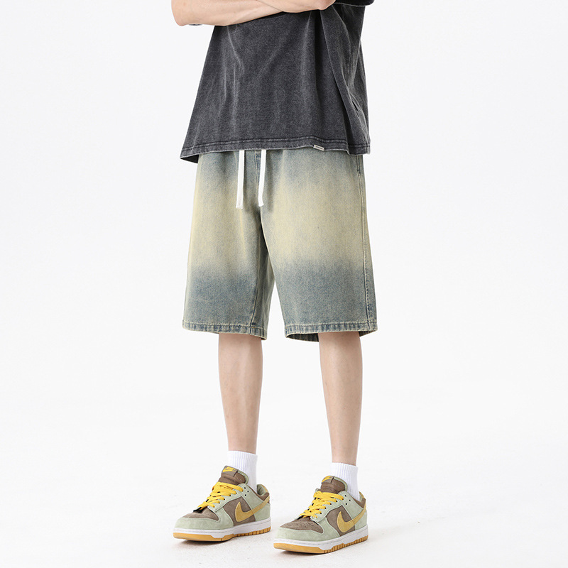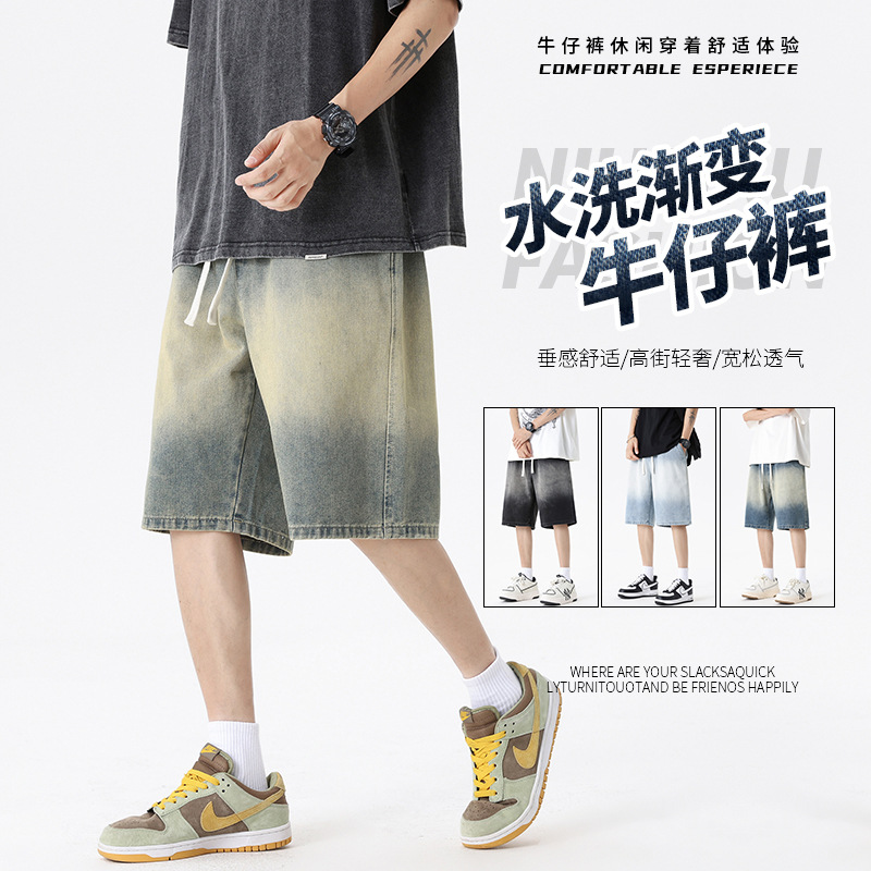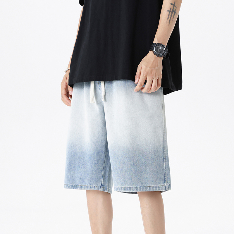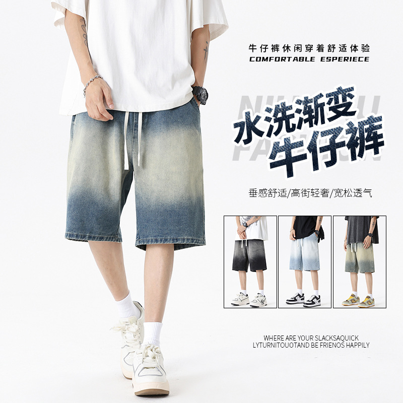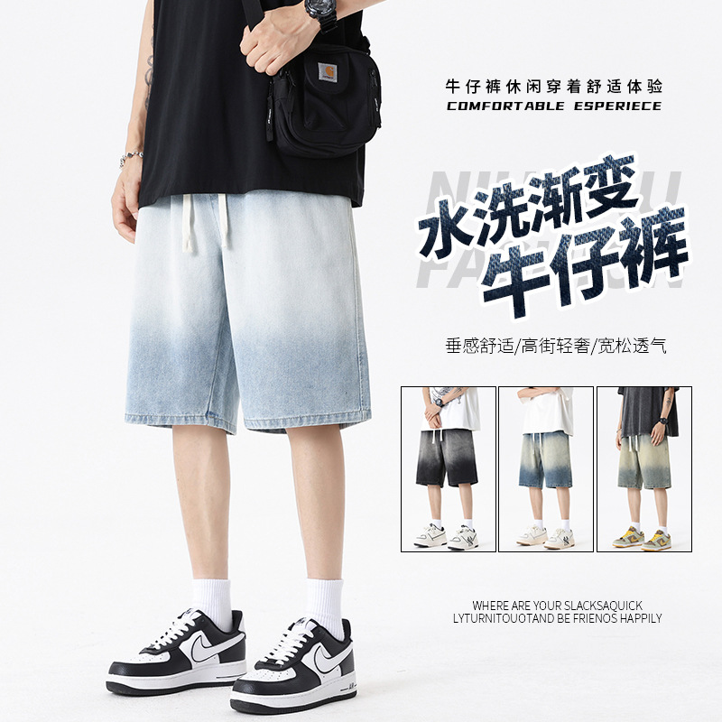 牛仔短裤男夏季宽松复古蓝色薄款运动中裤潮流美式直筒休闲五分裤