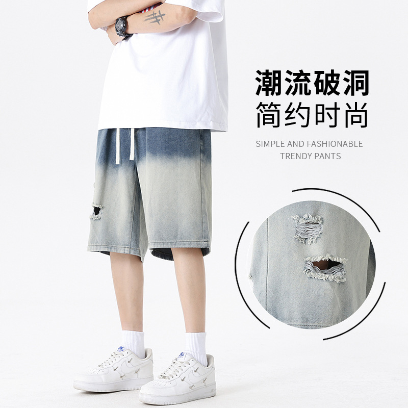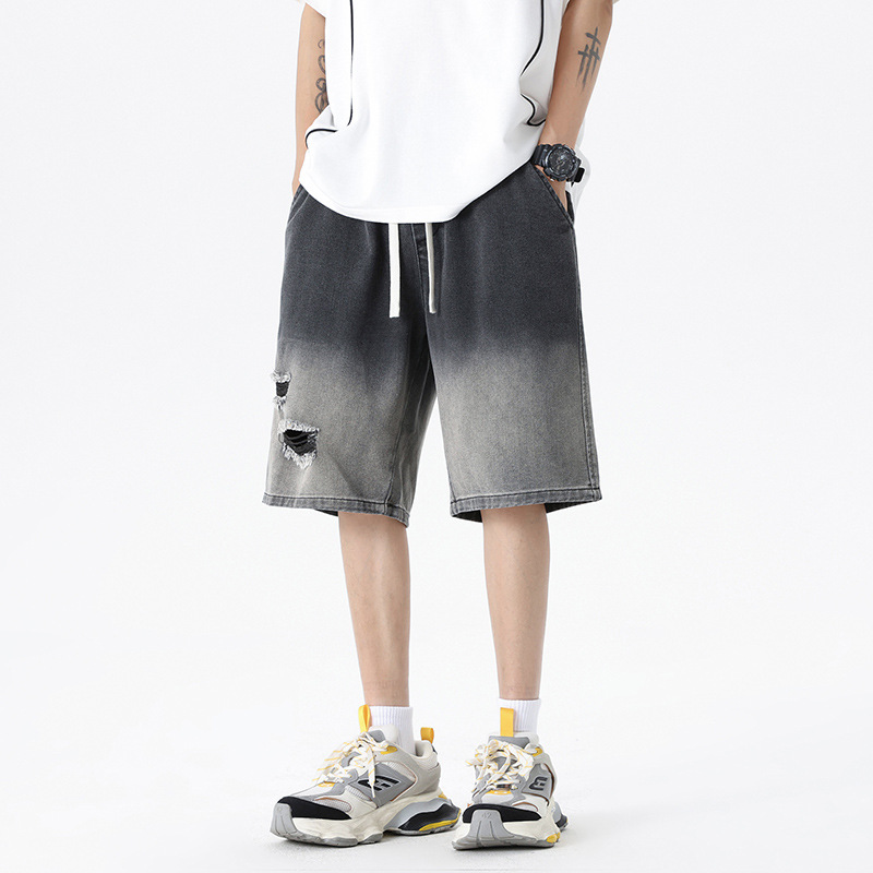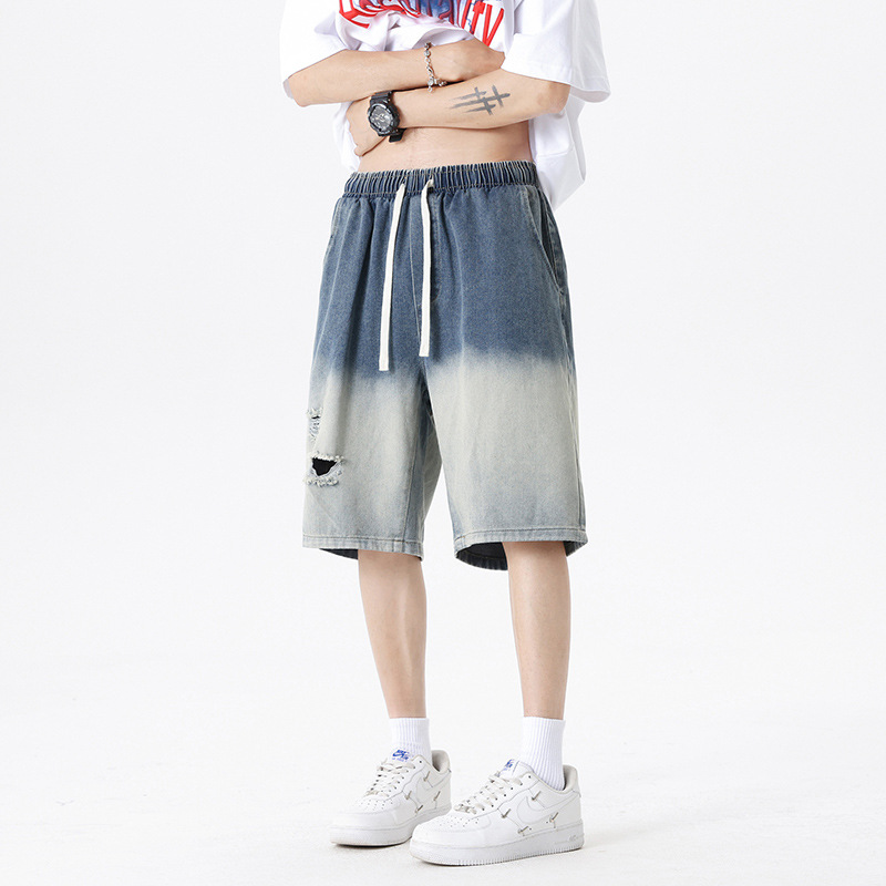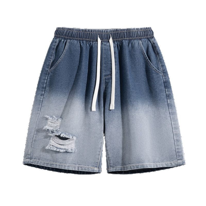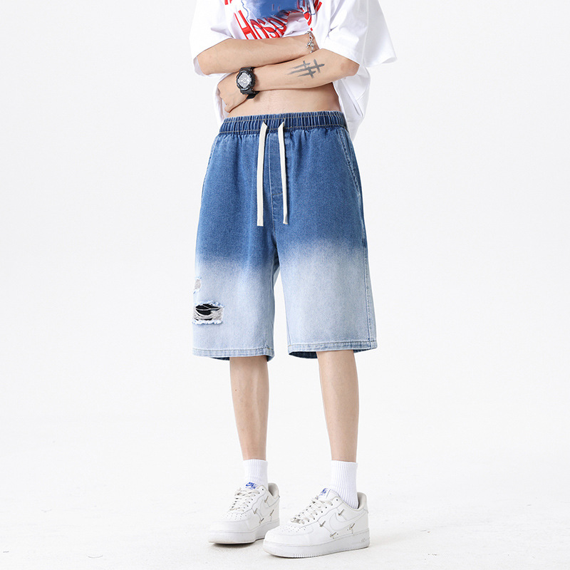 夏季潮牌渐变牛仔短裤冰丝休闲裤纯色五分裤子男女大码运动裤男装