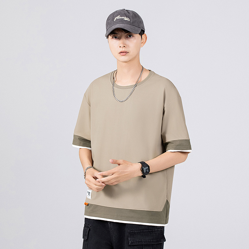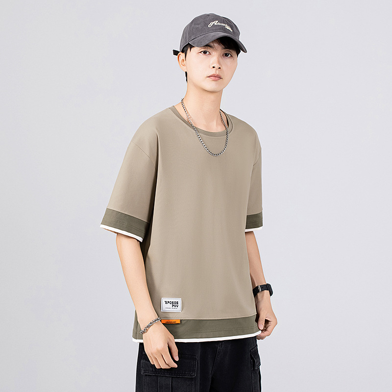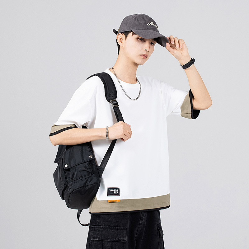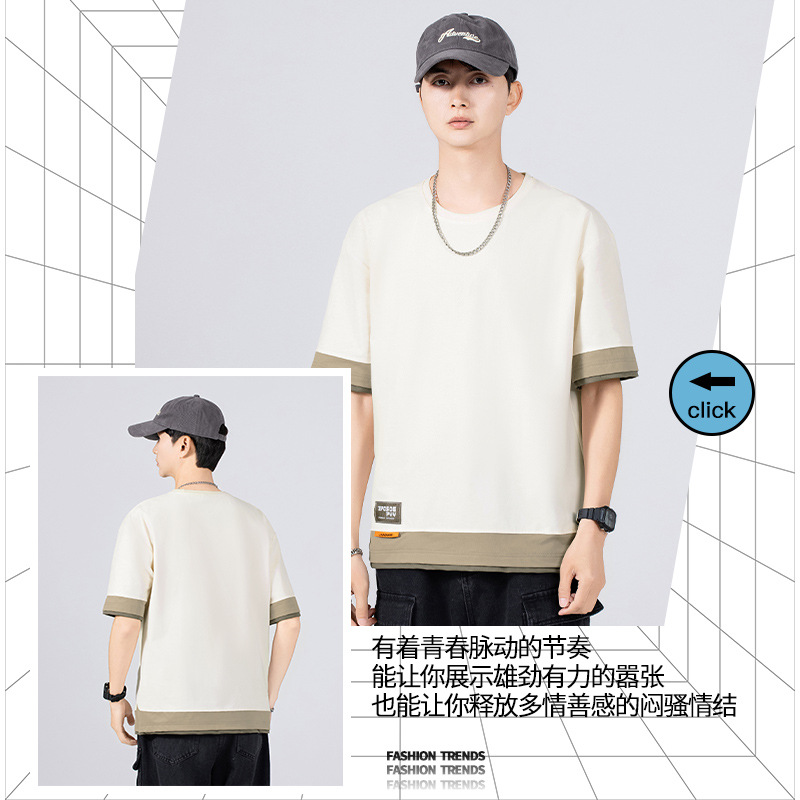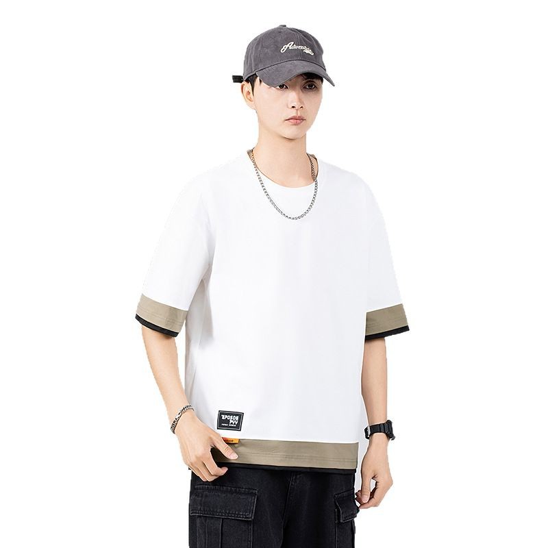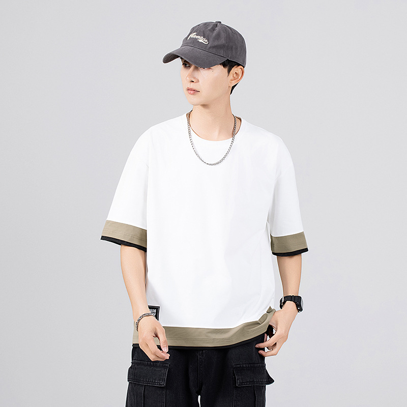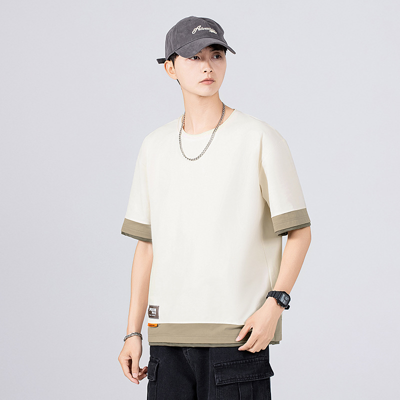 短袖t恤男夏季薄款潮牌宽松拼接百搭加肥加大码半袖衣服夏天男装