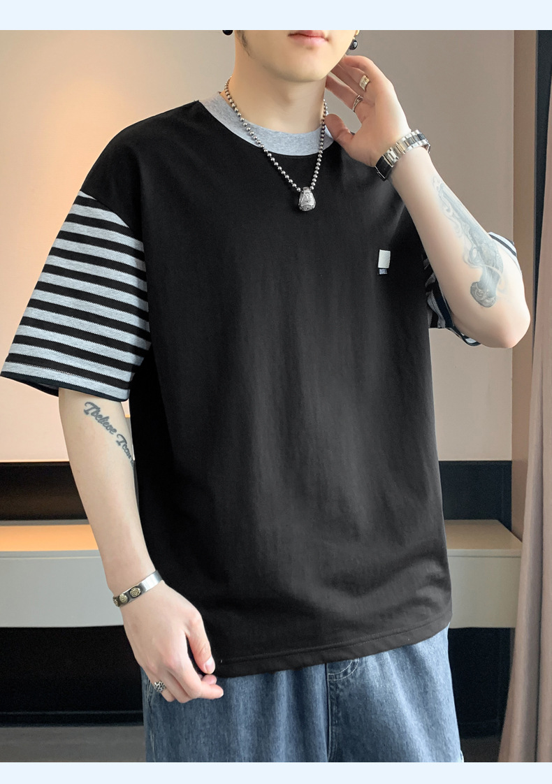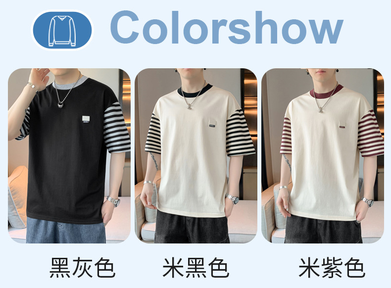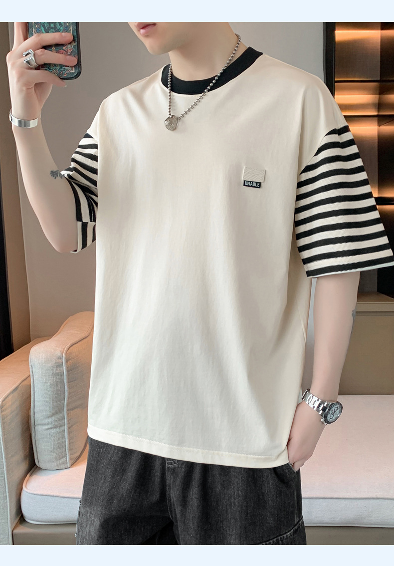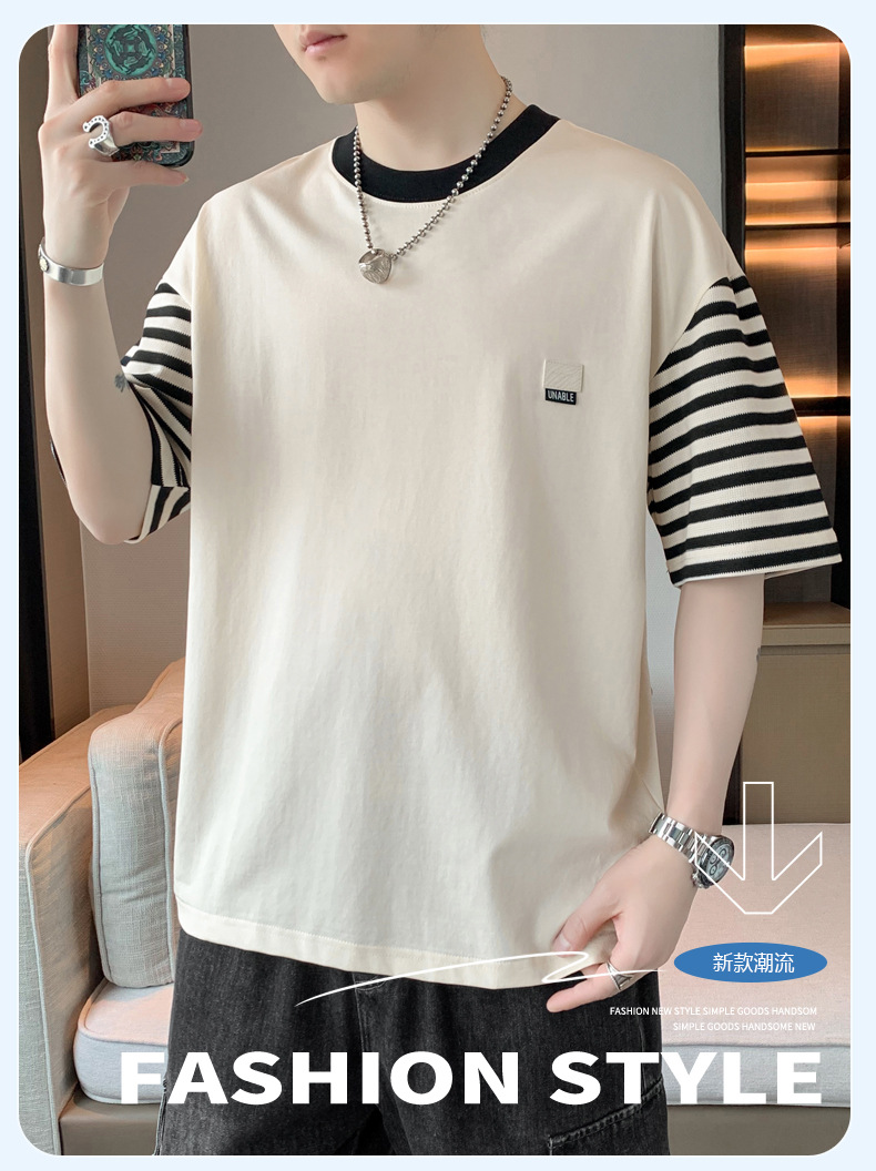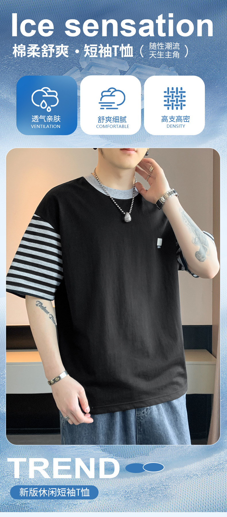 不规则短袖男t恤夏季痞帅男装2025新款上衣冰丝潮牌撞色拼接体恤