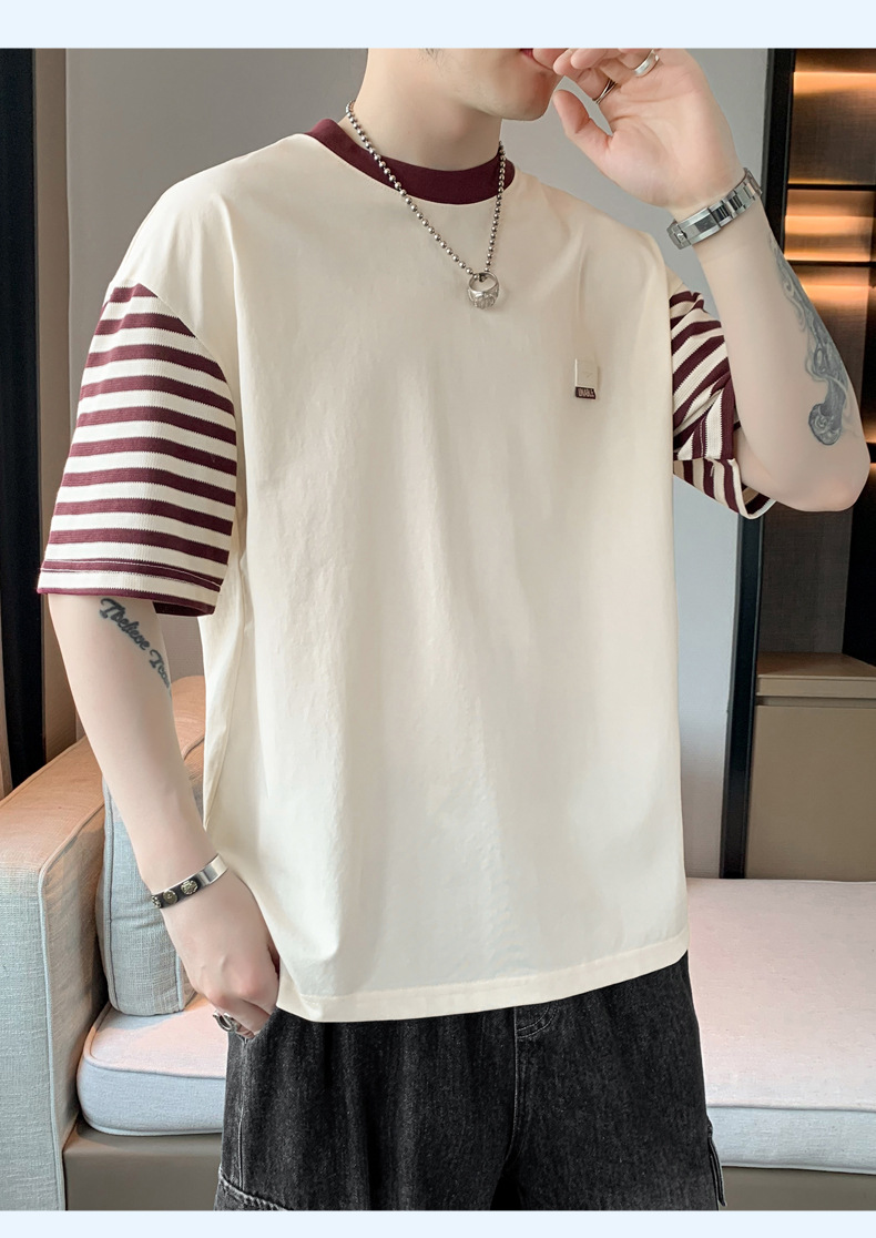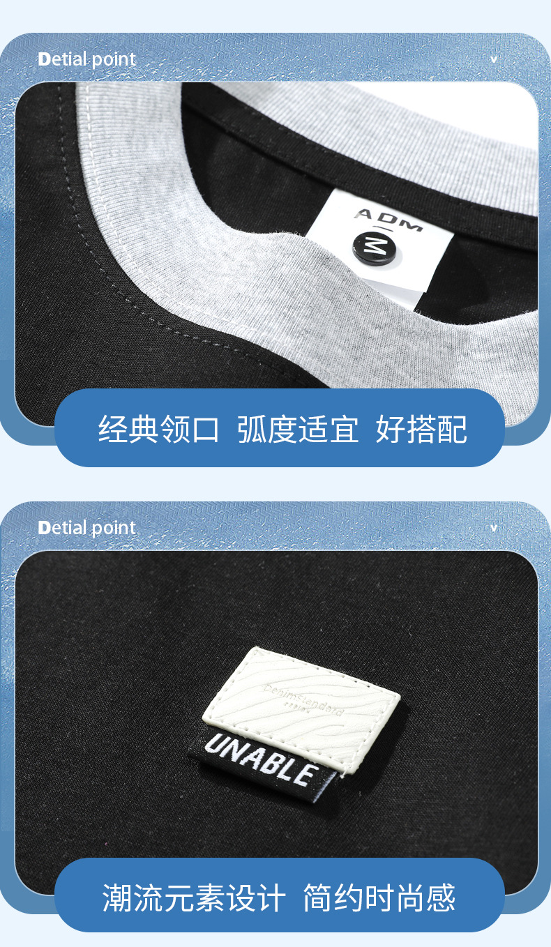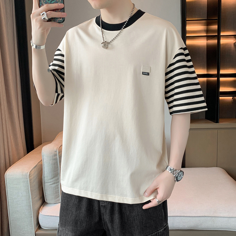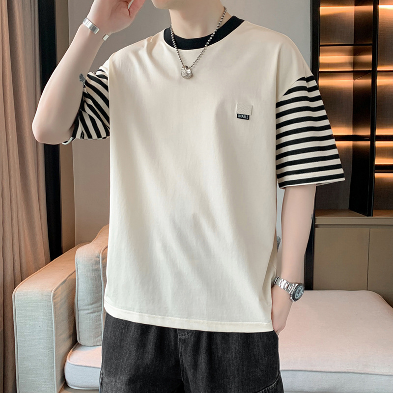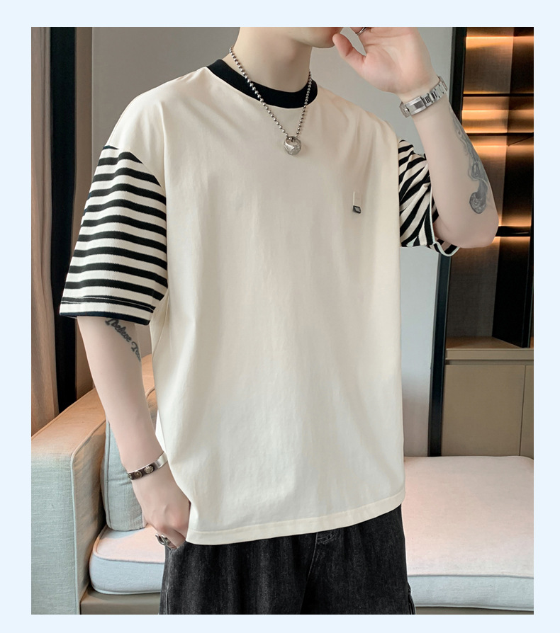 不规则短袖男t恤夏季痞帅男装2025新款上衣冰丝潮牌撞色拼接体恤