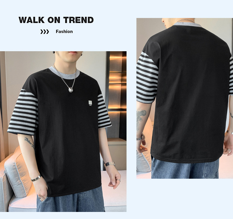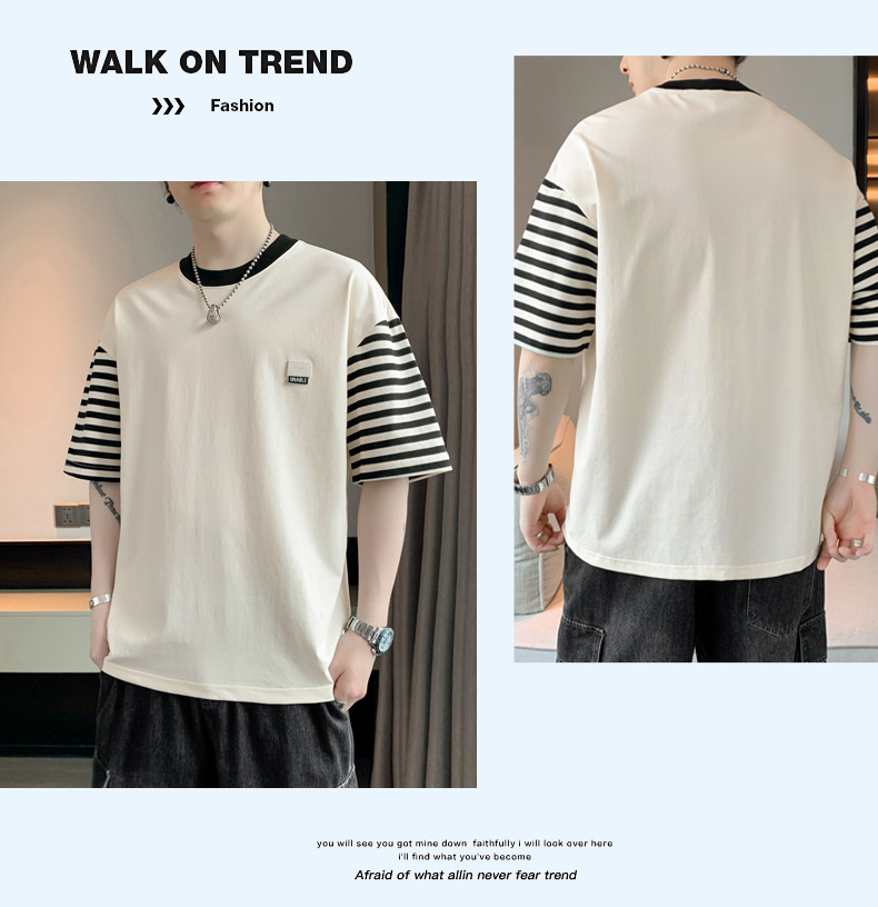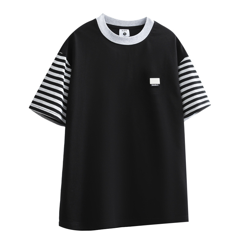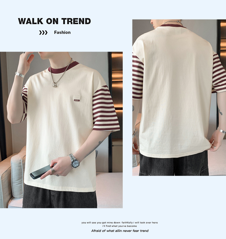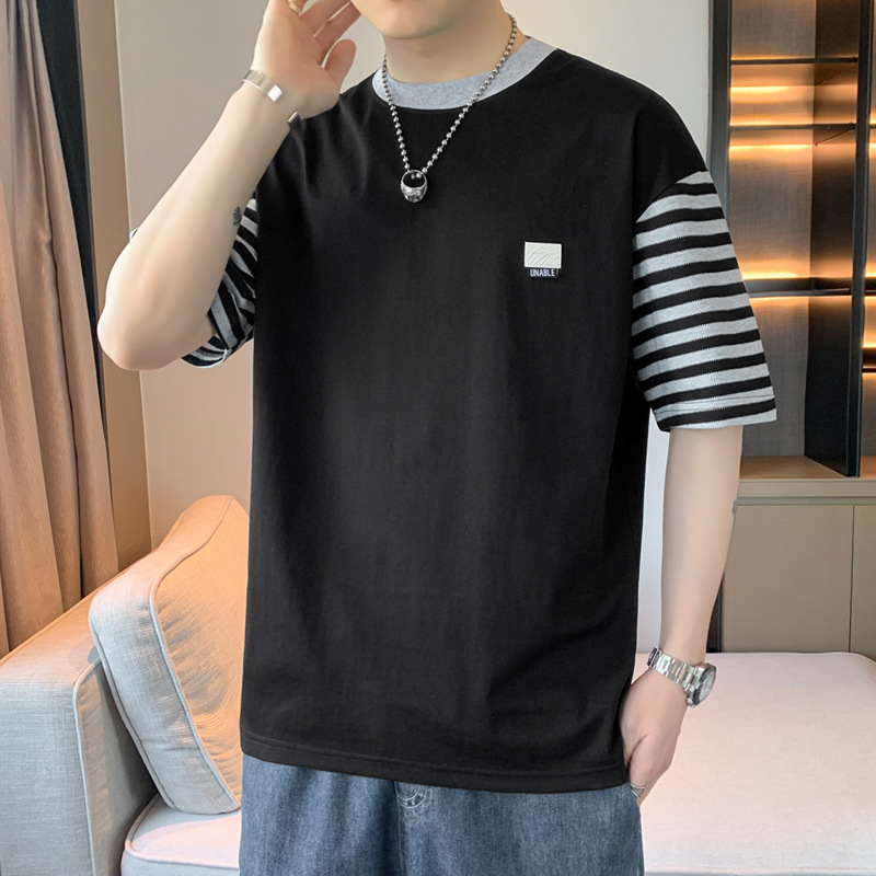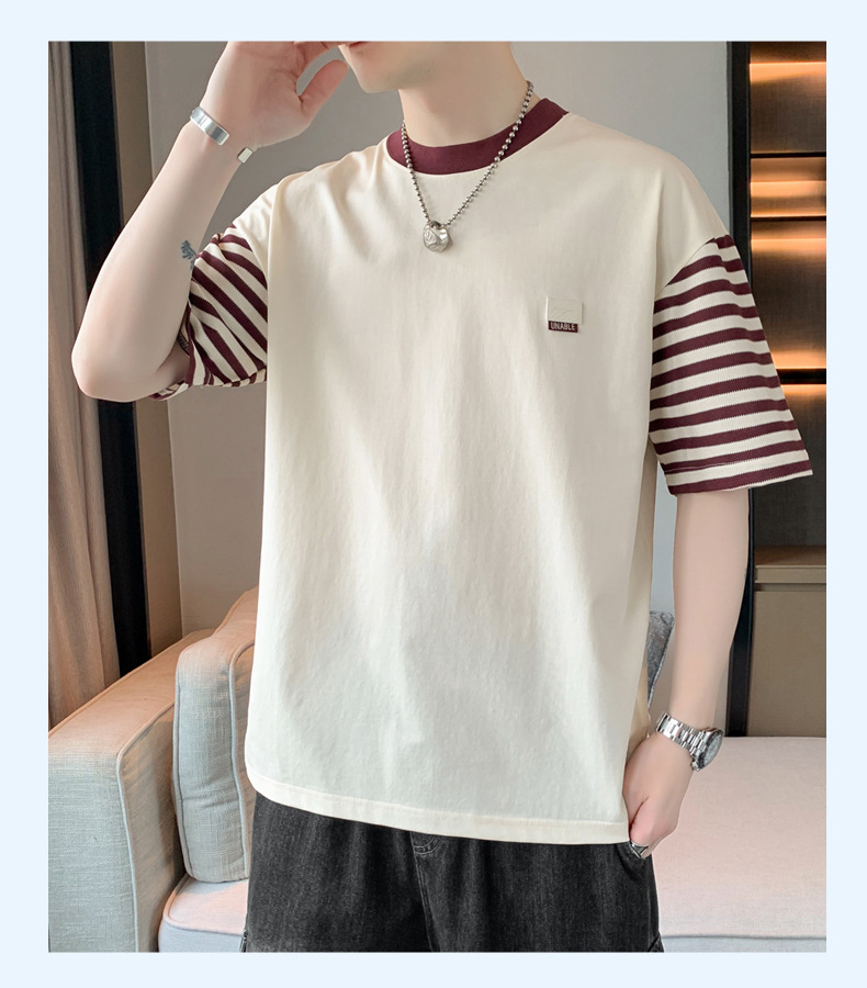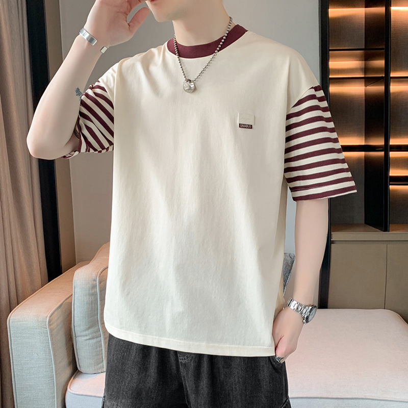 不规则短袖男t恤夏季痞帅男装2025新款上衣冰丝潮牌撞色拼接体恤
