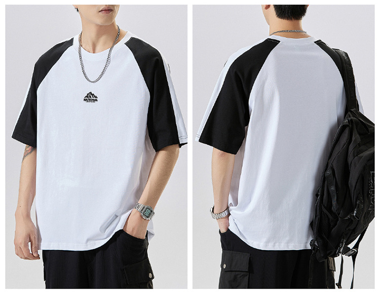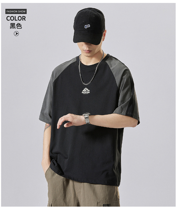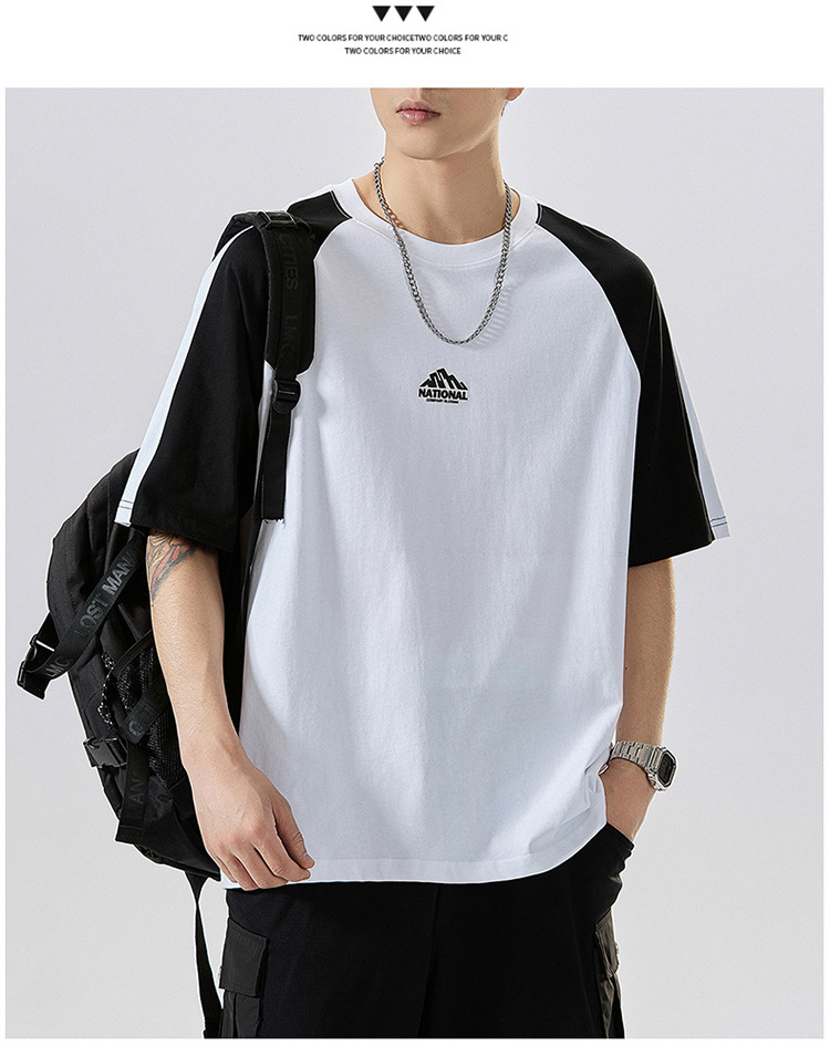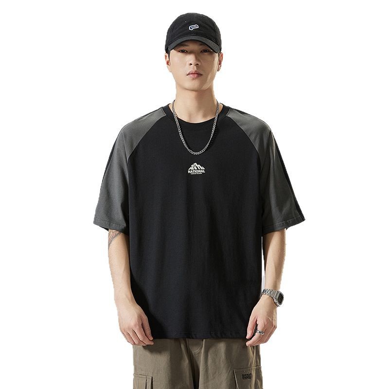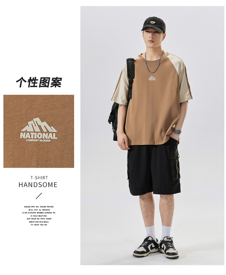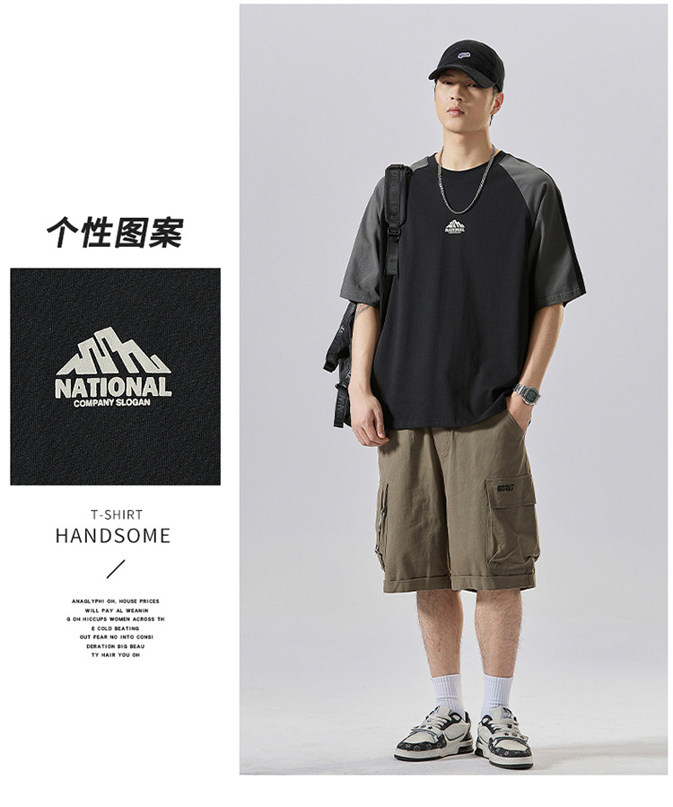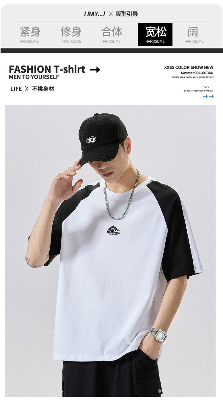 American sleeved short-sleeved T-shirt, men's summer loose trendy brand printed half-sleeved T-shirt, heavy round-neck top