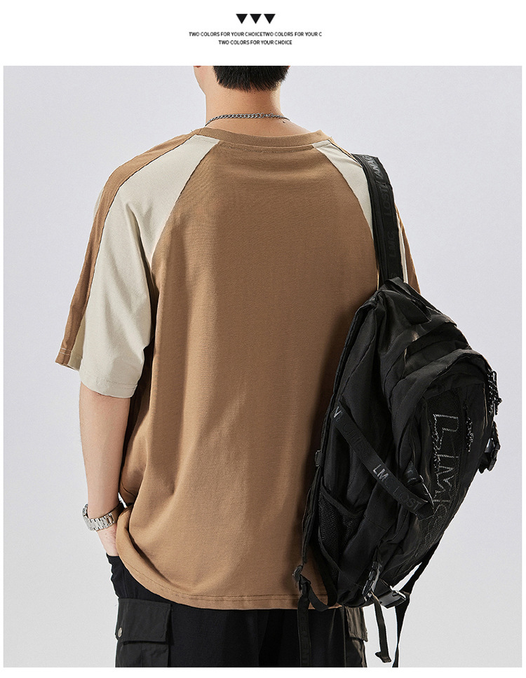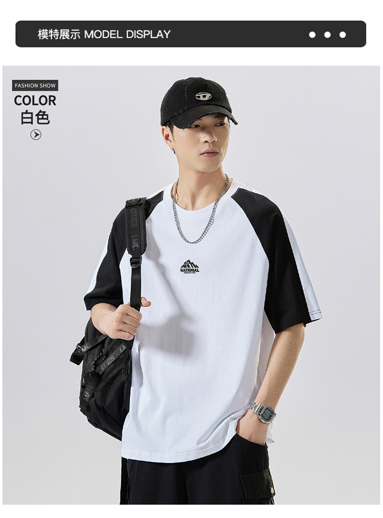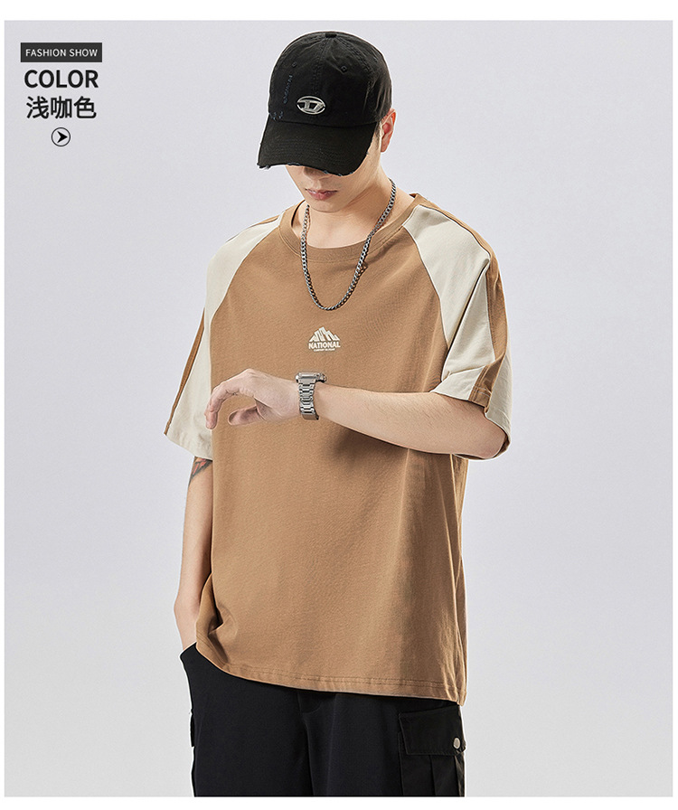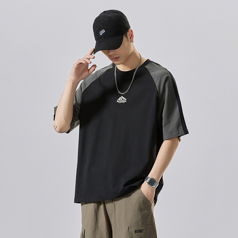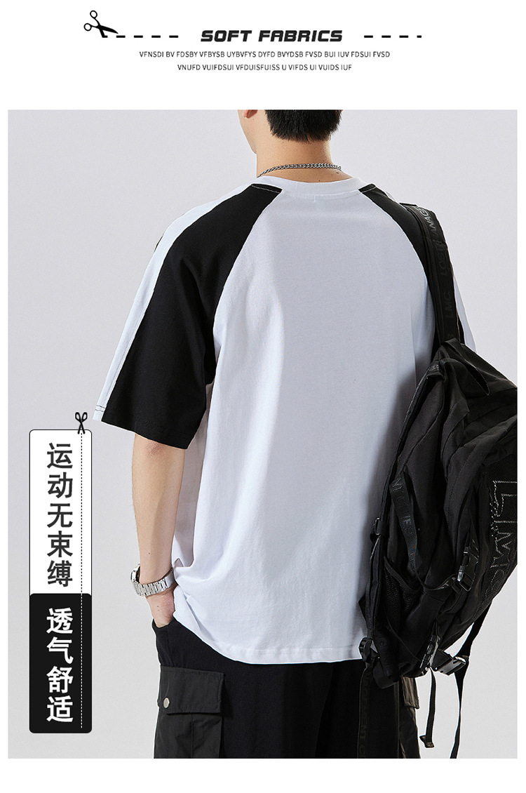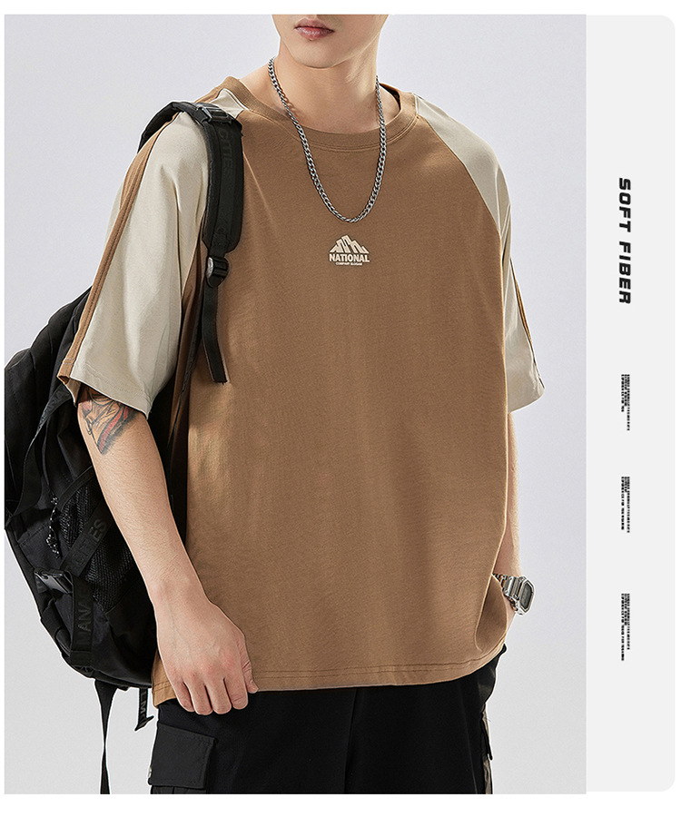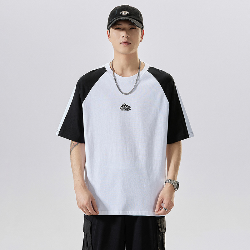 American sleeved short-sleeved T-shirt, men's summer loose trendy brand printed half-sleeved T-shirt, heavy round-neck top