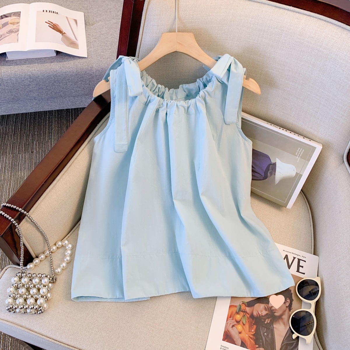 蓝色坎肩吊带背心女夏款外穿小衫无袖上衣宽松显瘦小个子衬衫