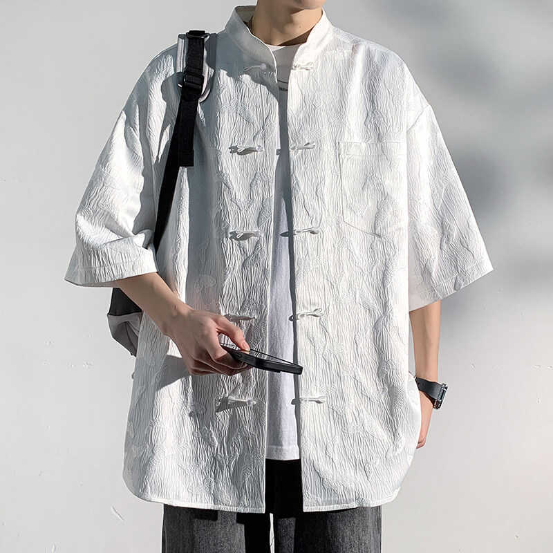 同款夏季新中式盘扣短袖衬衫男女感痞帅提花衬衣中国风中山装