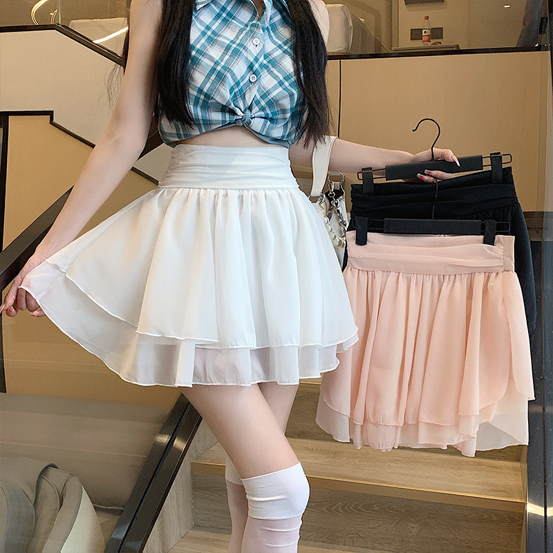 高级感蓬蓬仙女裙女夏季新款高腰a字雪纺荷叶边公主短裙