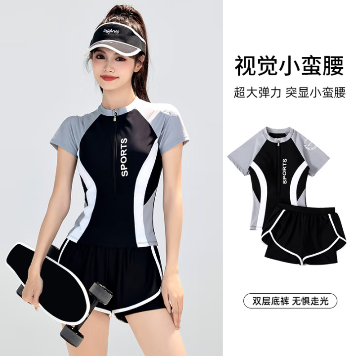 泳衣女保守分体运动风高级感显瘦遮肚游泳馆专业泡温泉泳装【80-110斤】