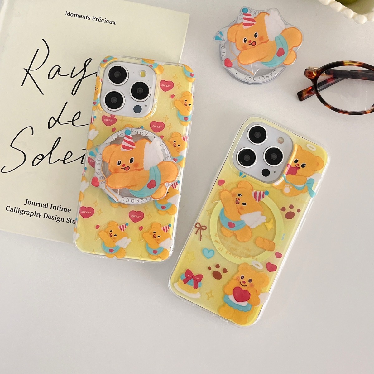 卡通ins磁吸黄油小熊适用15promax手机壳14pro双层光面苹果13防摔
