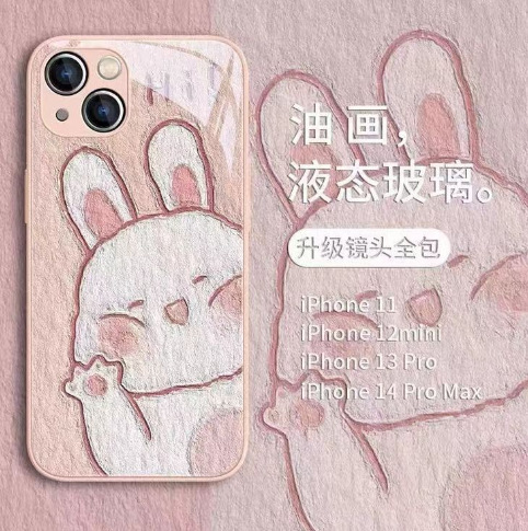 油画小兔子适用苹果14promax手机壳13/12/xr液态玻璃7p8p卡通全包