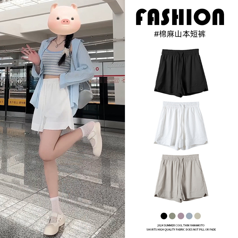 白色山本短裤女春夏2025新款外穿高腰宽松休闲运动速干冰丝五分裤