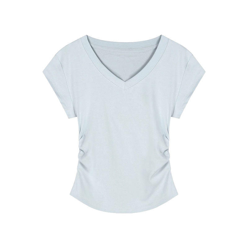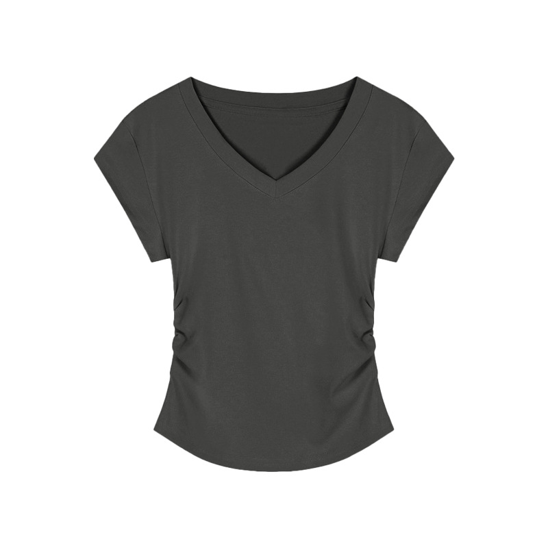 美式辣妹纯色简约V领T恤女2025夏季新款短款修身百搭套头学生上衣