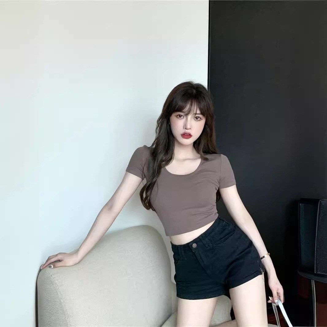 T恤女夏季ins潮白色修身短款露脐纯欲风甜辣修身短袖上衣新款
