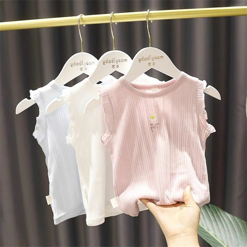女童夏装背心宝宝洋气儿童个性潮韩版提花木耳边花朵字母外穿上衣