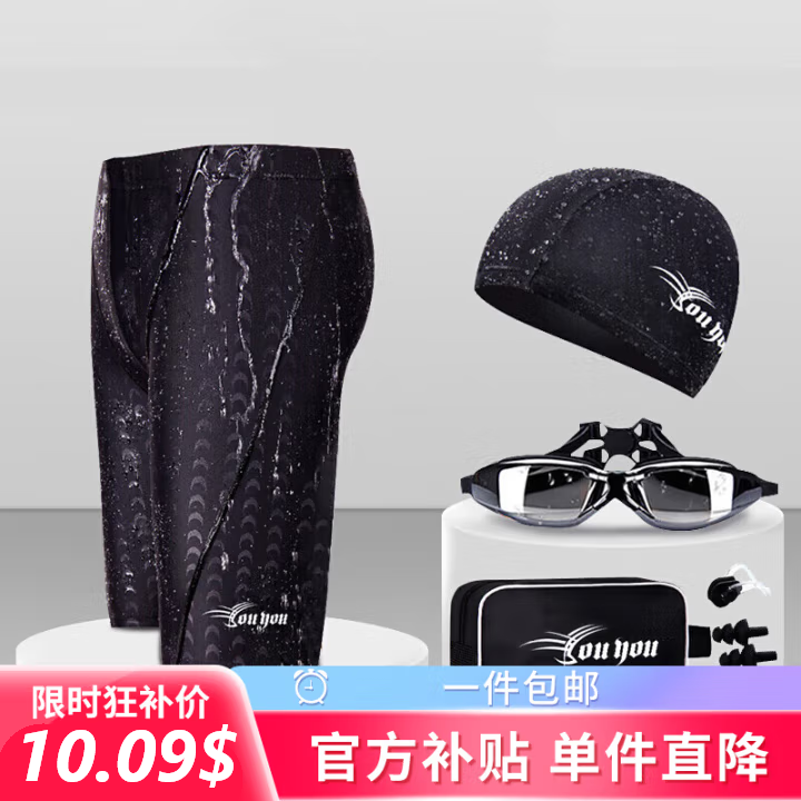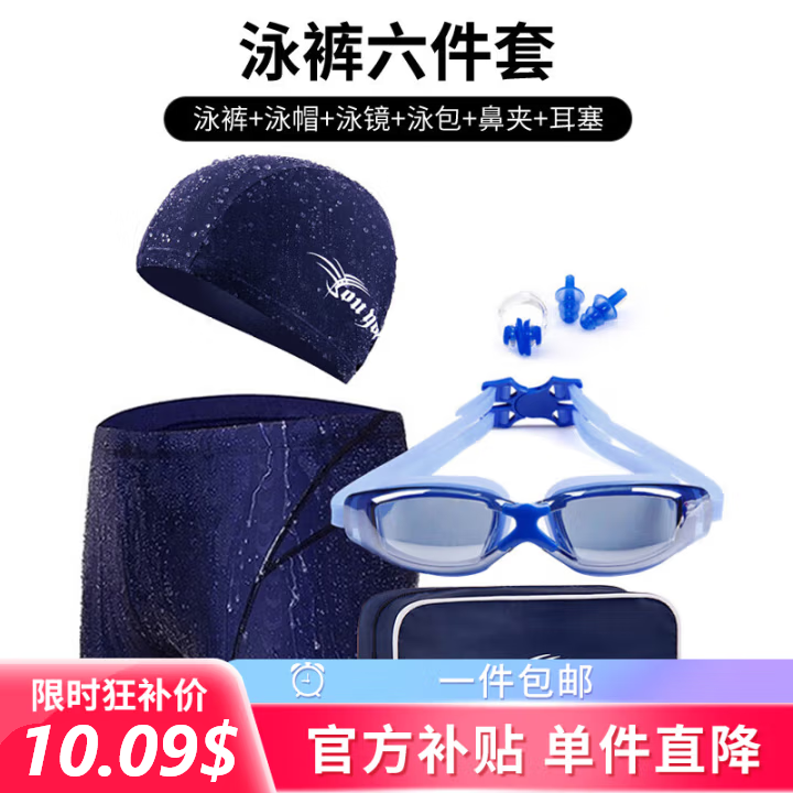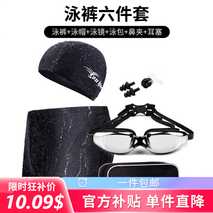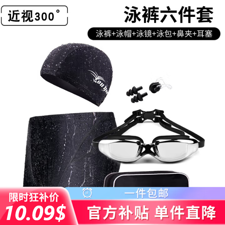 男士六件套平光近视度数泳镜泳帽套装速干平角泳裤游泳装备