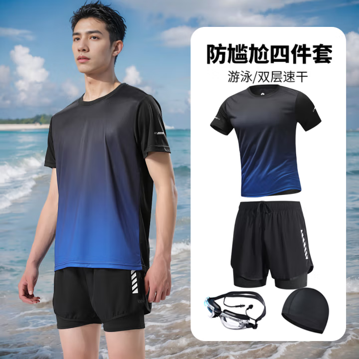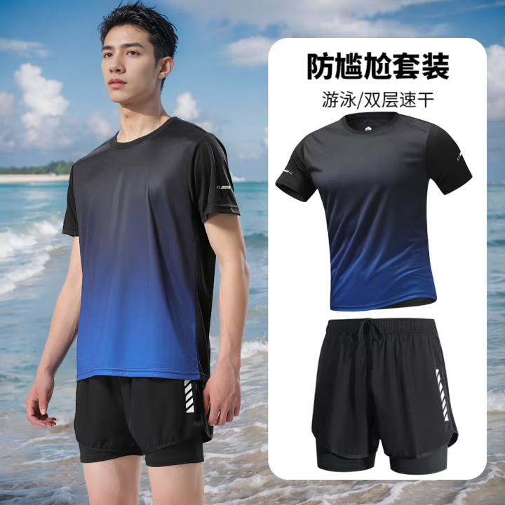 黑蓝渐变短袖+泳裤