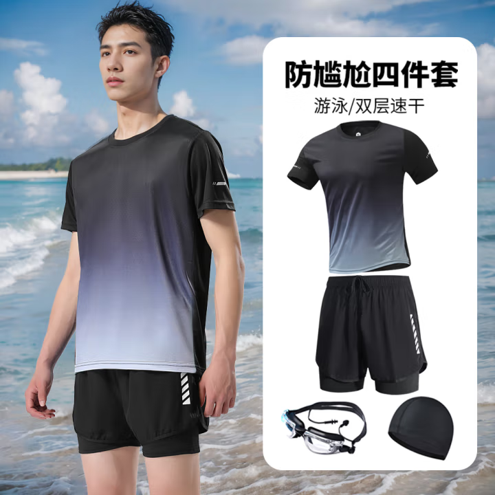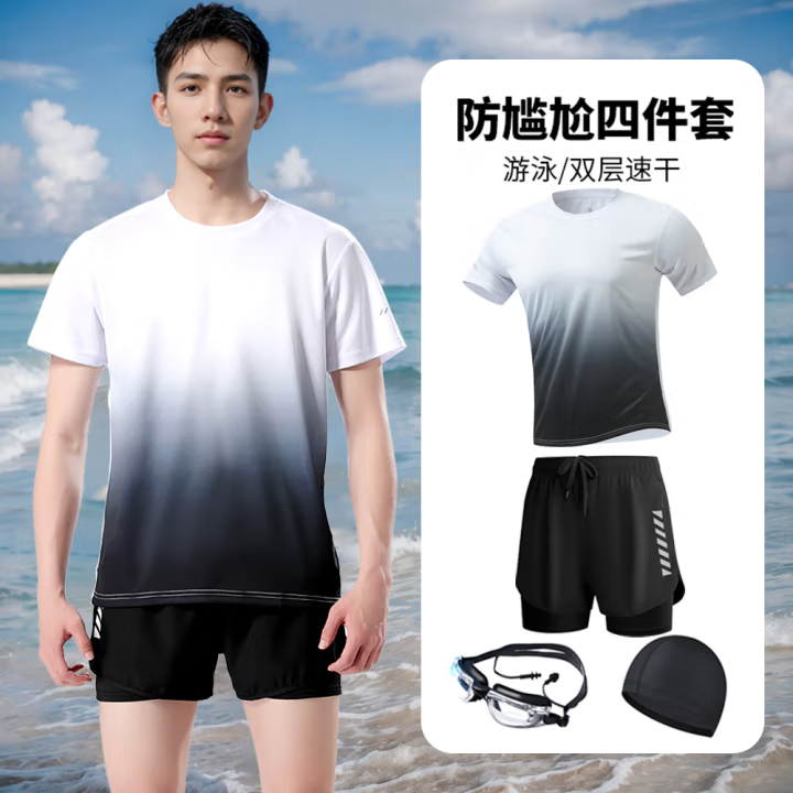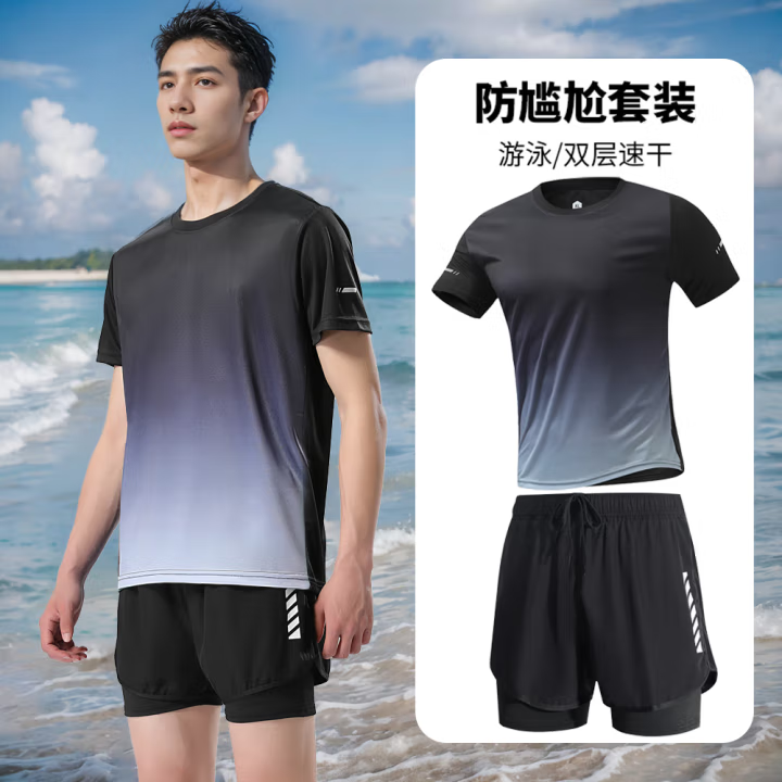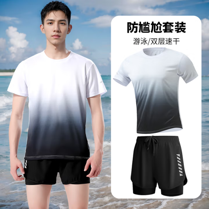 黑灰渐变短袖+泳裤