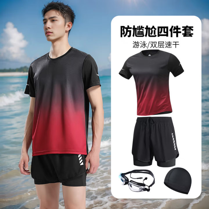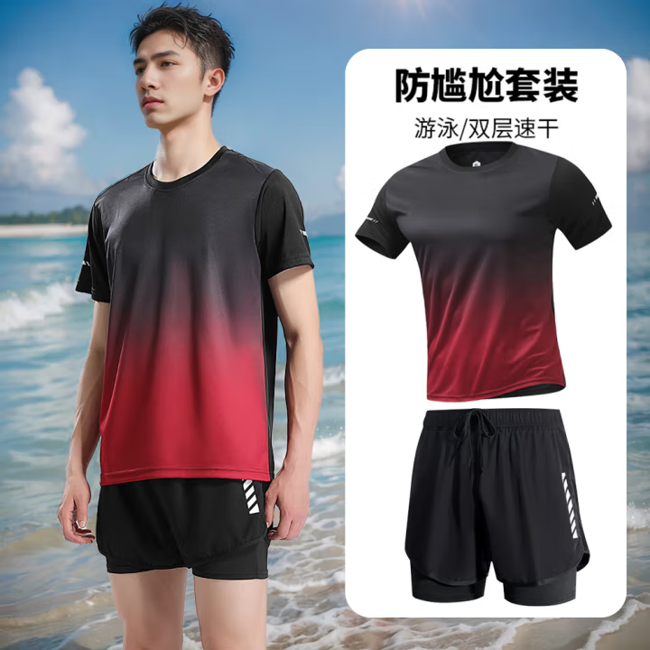 黑红渐变短袖+泳裤
