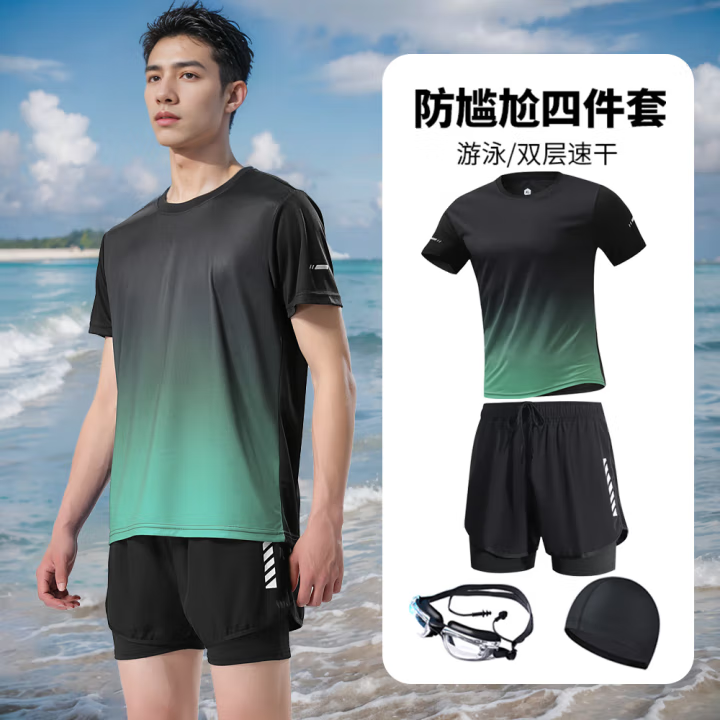 黑绿渐变短袖+泳裤