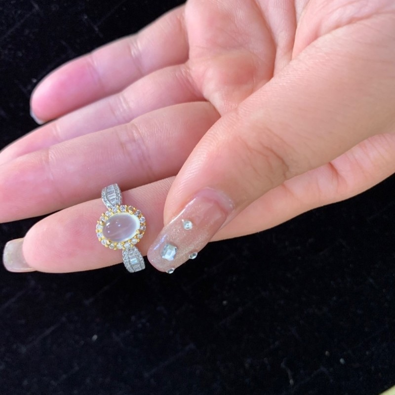 天然岫玉白冰料戒指S925银镶嵌小众高级时尚百搭新中式可调节指环