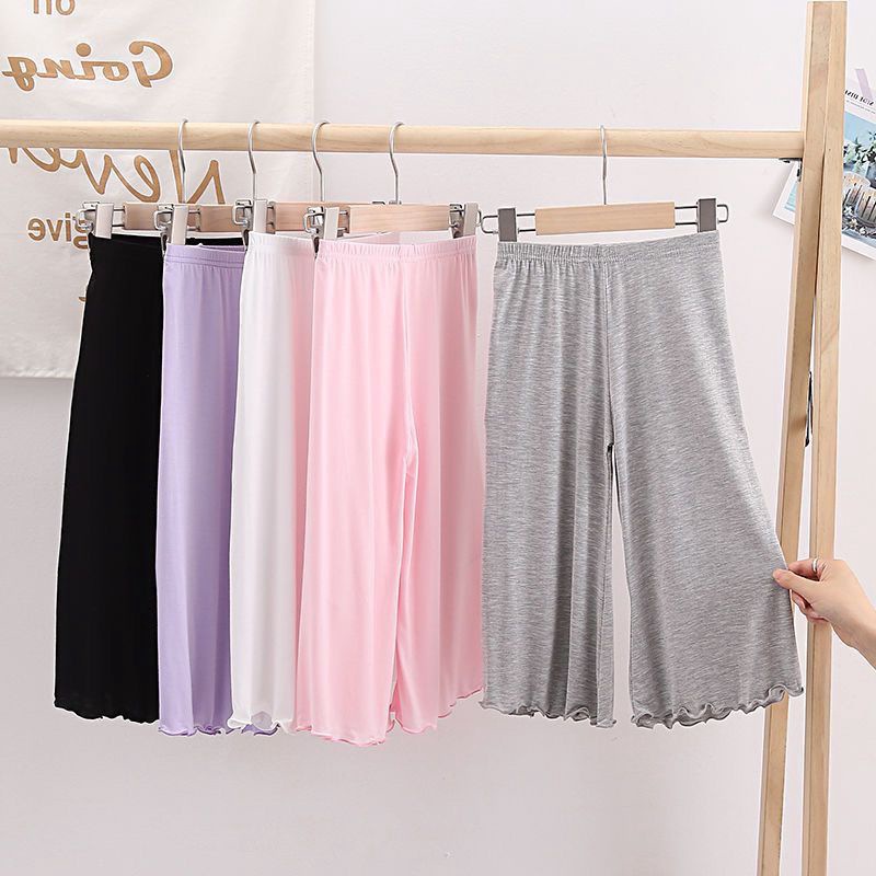 夏季女童休闲裤宝宝洋气阔腿裤儿童个性潮韩版莫代尔木耳边抖抖裤