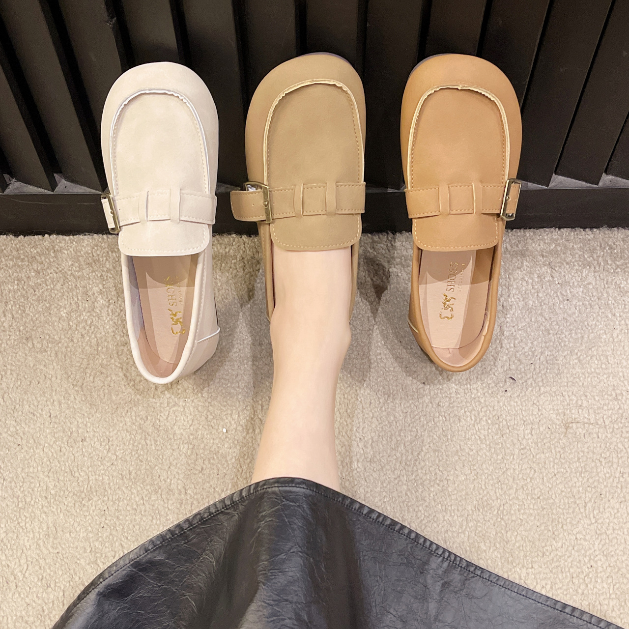 复古圆头软皮软底小皮鞋春秋新款单鞋懒人乐福鞋平底豆豆鞋
