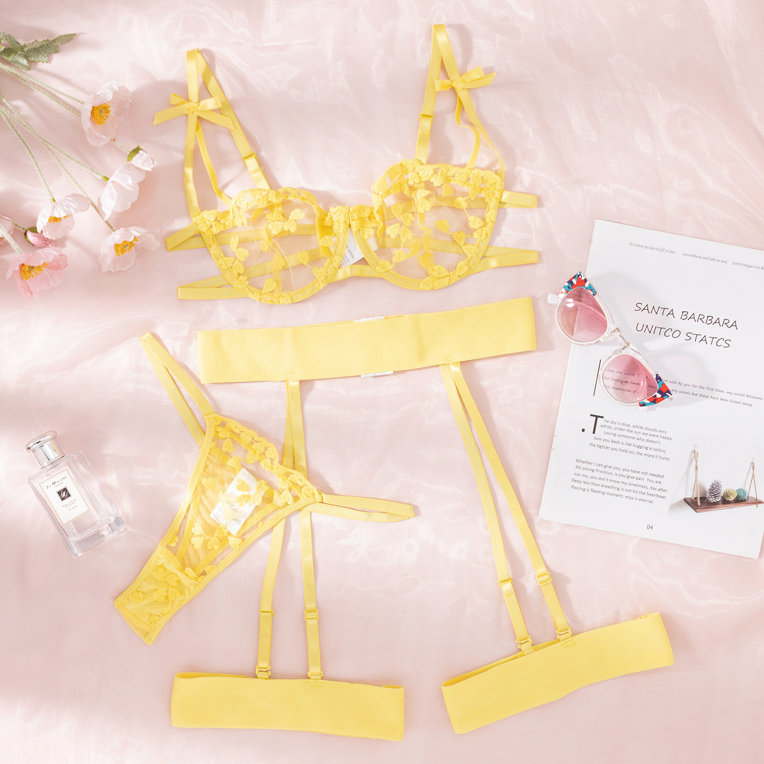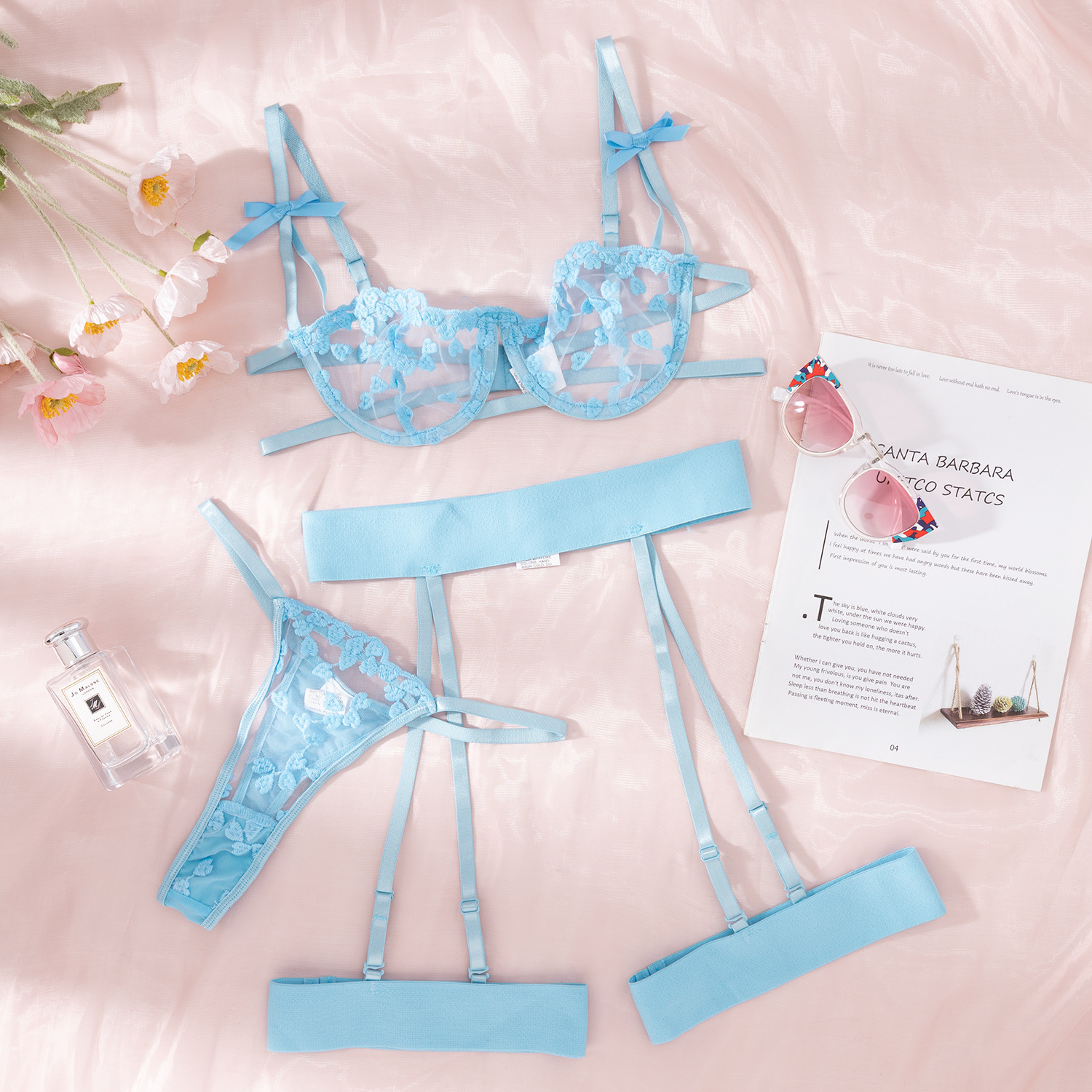 跨境欧美新款性感内衣三点式网纱透视装性感无痕背扣内衣情趣内衣