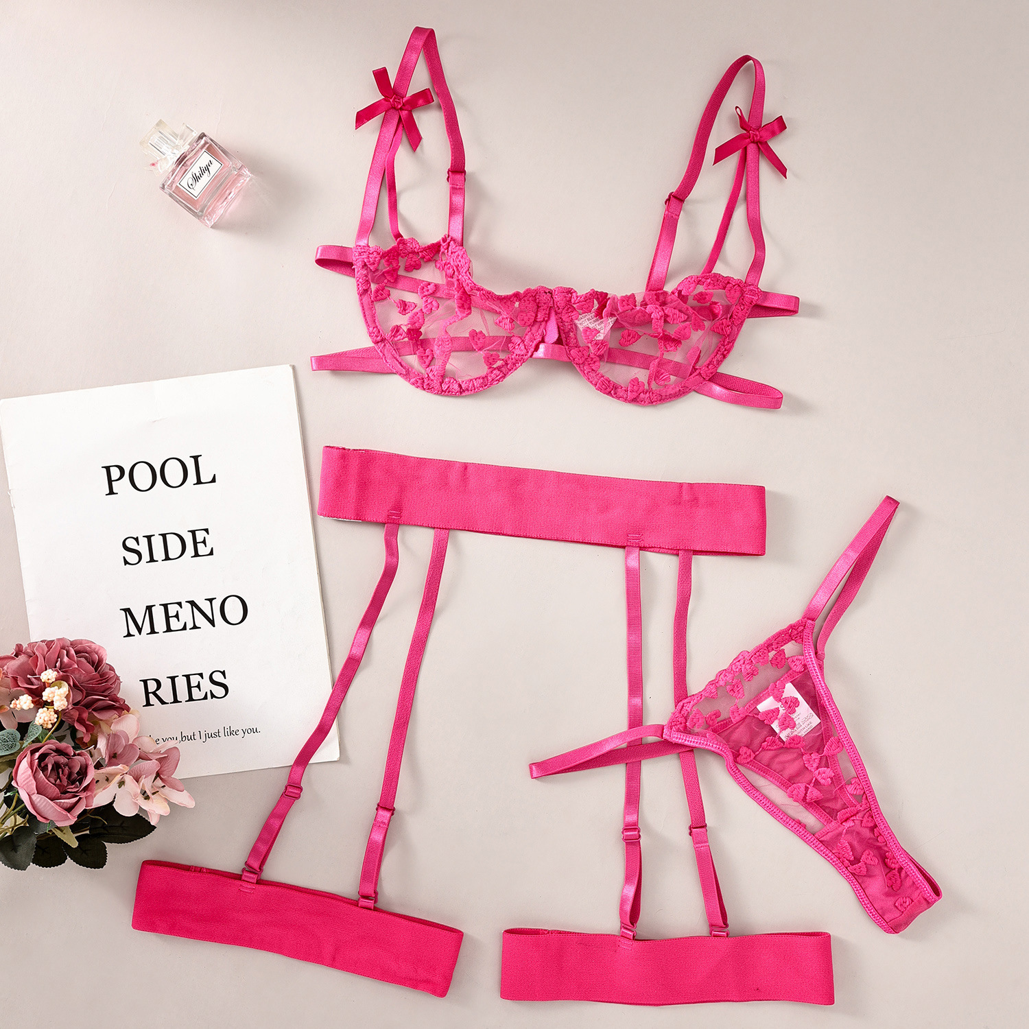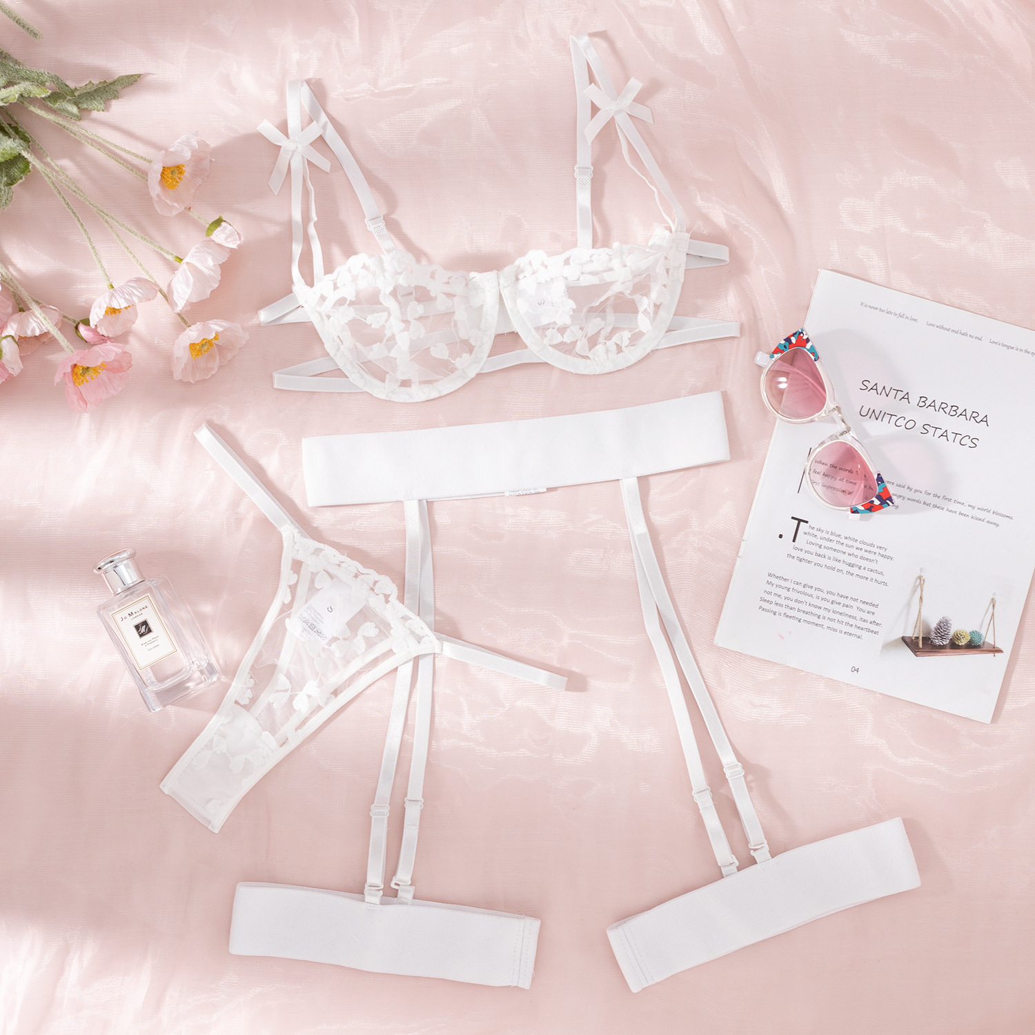 跨境欧美情趣风吊带蝴蝶结网纱套日系性感蕾丝内衣内裤纯欲镂空