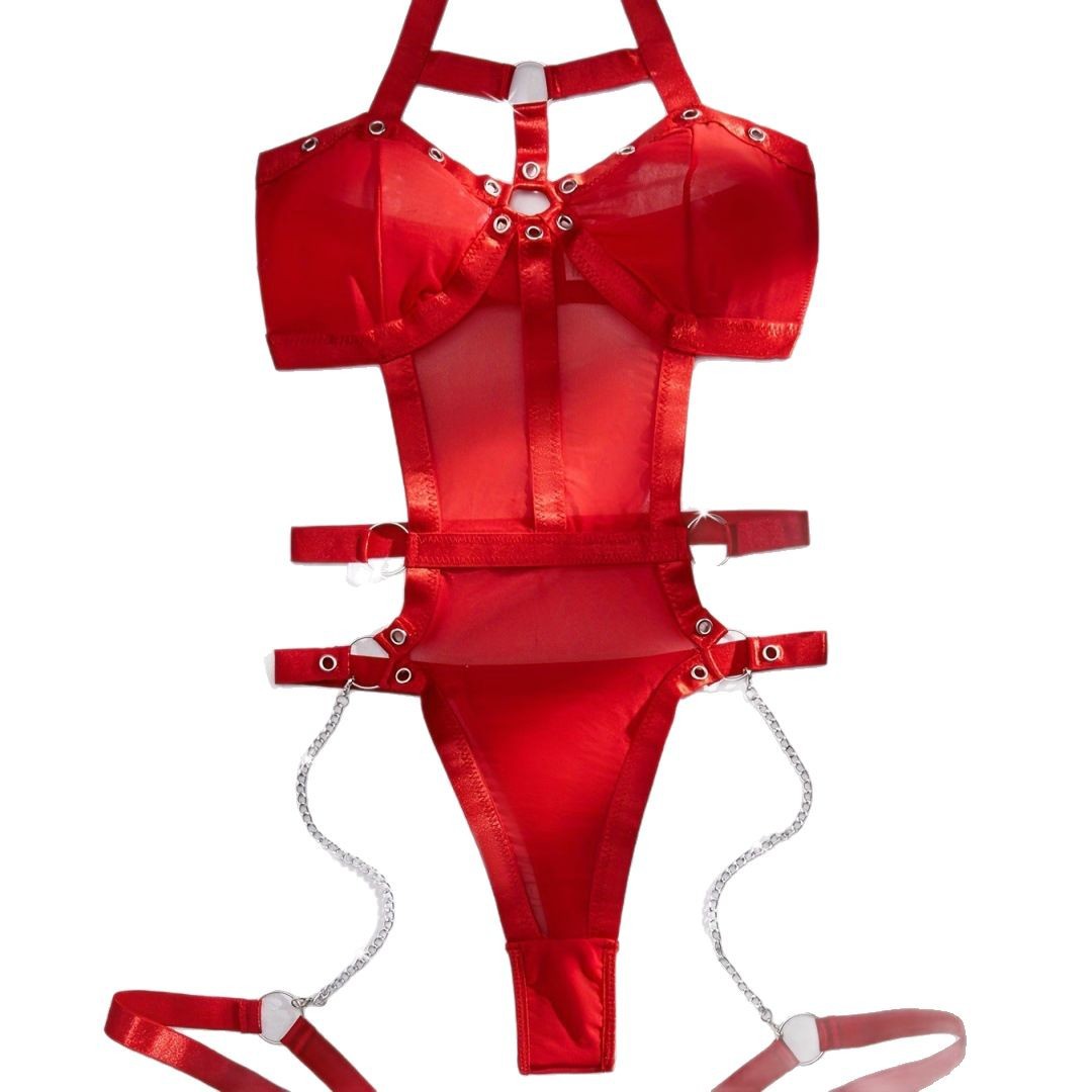 7121欧美2025新款红色性感挂脖链条免脱情趣套装法式火辣诱惑