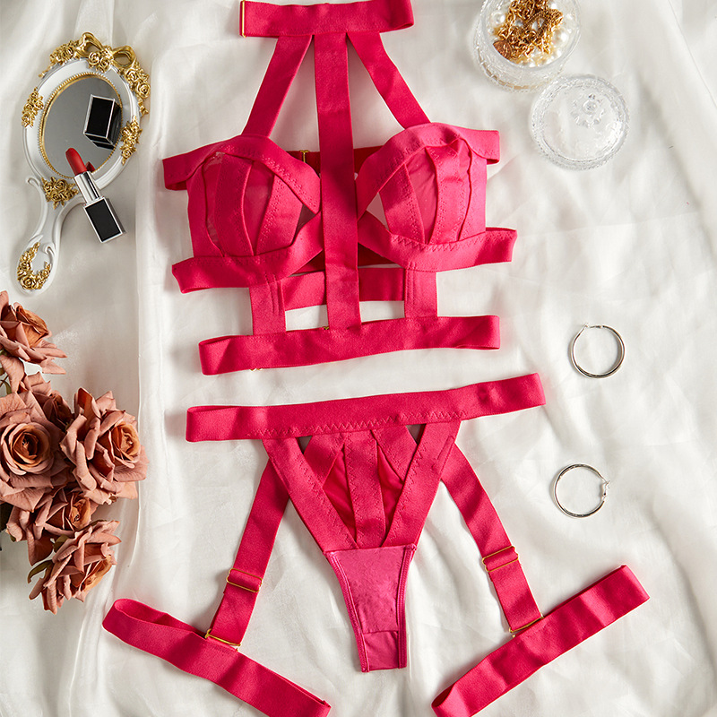 跨境挂脖金属圆扣性感内衣套