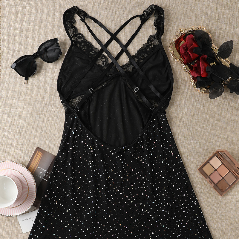 7056 跨境热销款 欧美性感透视网纱蕾丝情趣内衣透视挂脖吊带裙