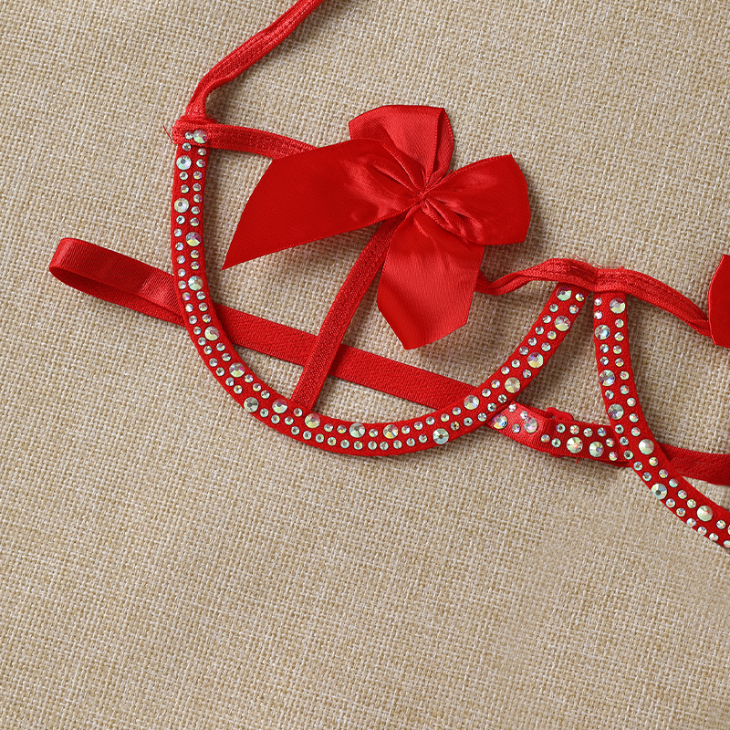 欧美跨境情趣内衣蝴蝶结镂空比基尼文胸内裤三点套装批发代发