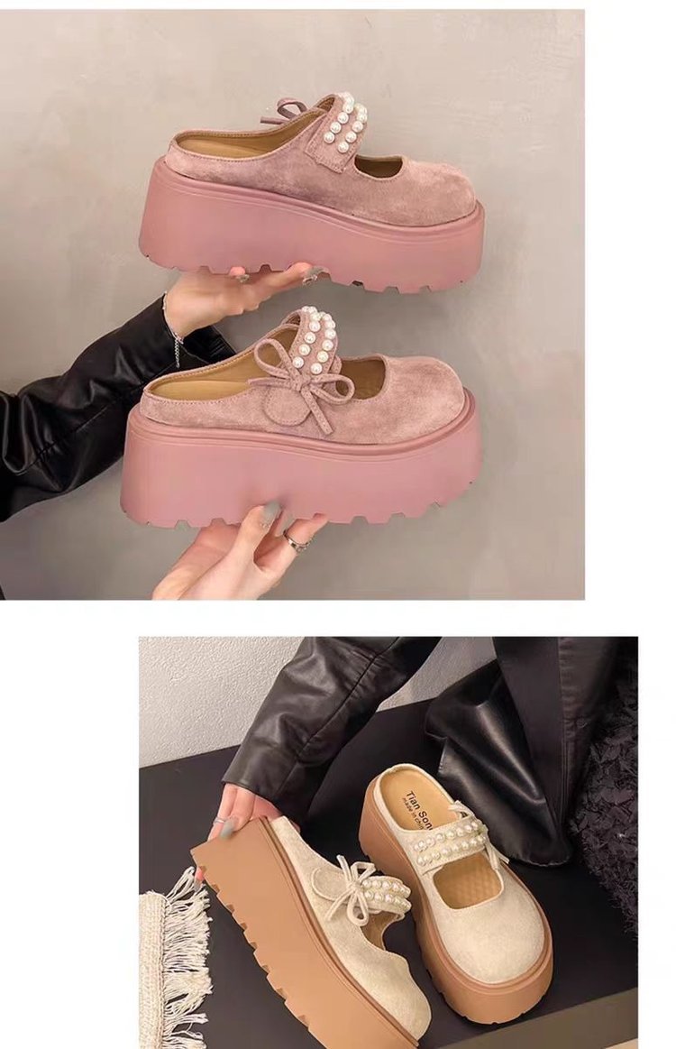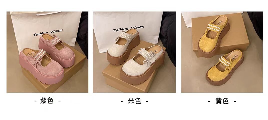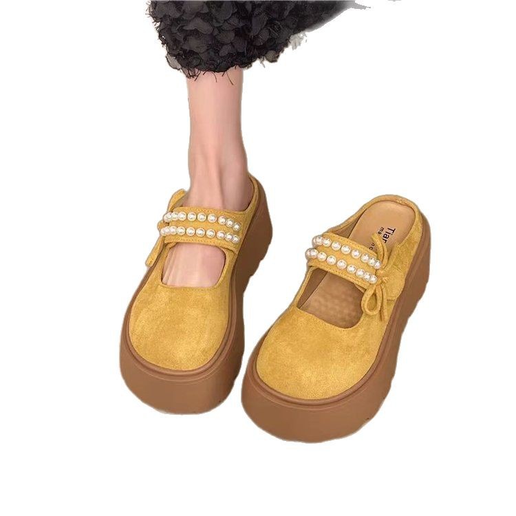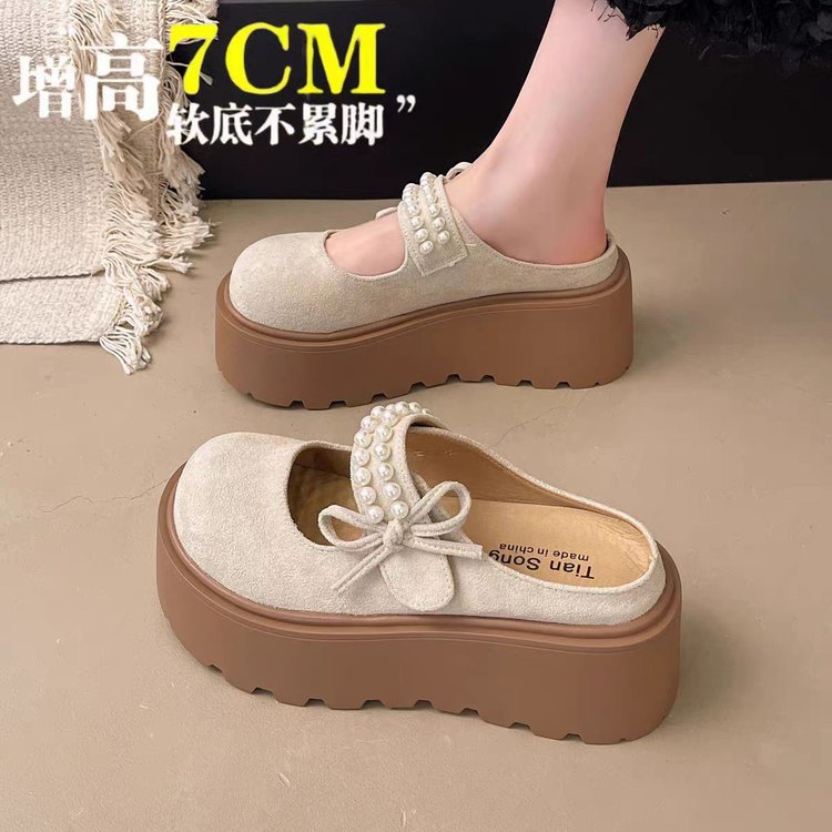 厚底增高勃肯拖鞋女夏外穿2025新款懒人包头半拖珍珠玛丽珍凉拖鞋