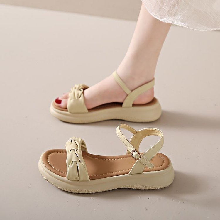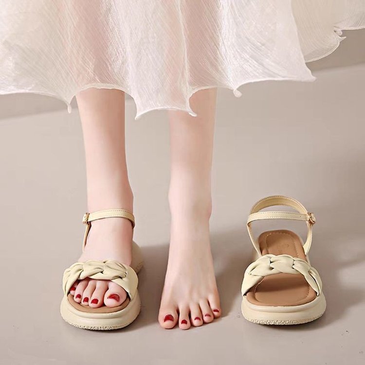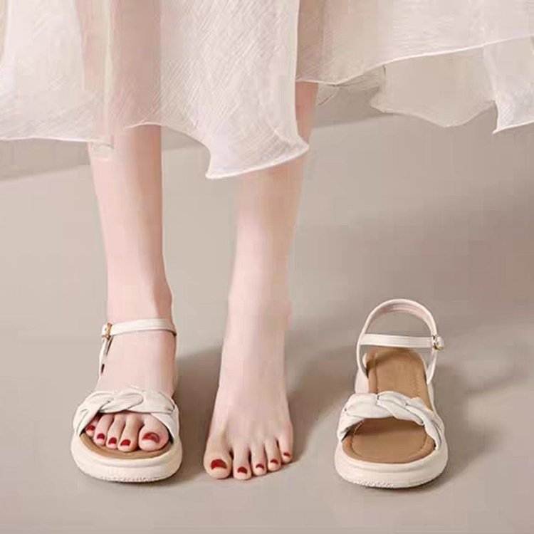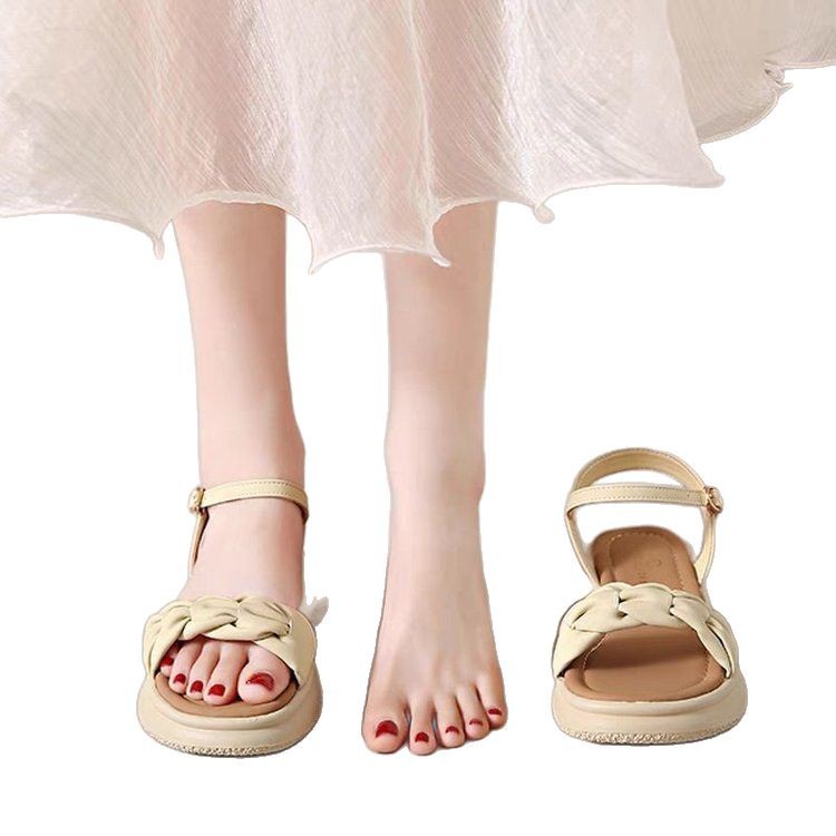 时尚凉鞋女夏款2025年新款夏季平底沙滩鞋仙女风一字带女士配裙子