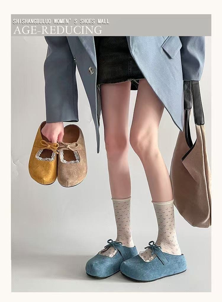 勃肯鞋女鞋2025年新款蝴蝶结复古平底包头外穿一脚蹬懒人半拖鞋女