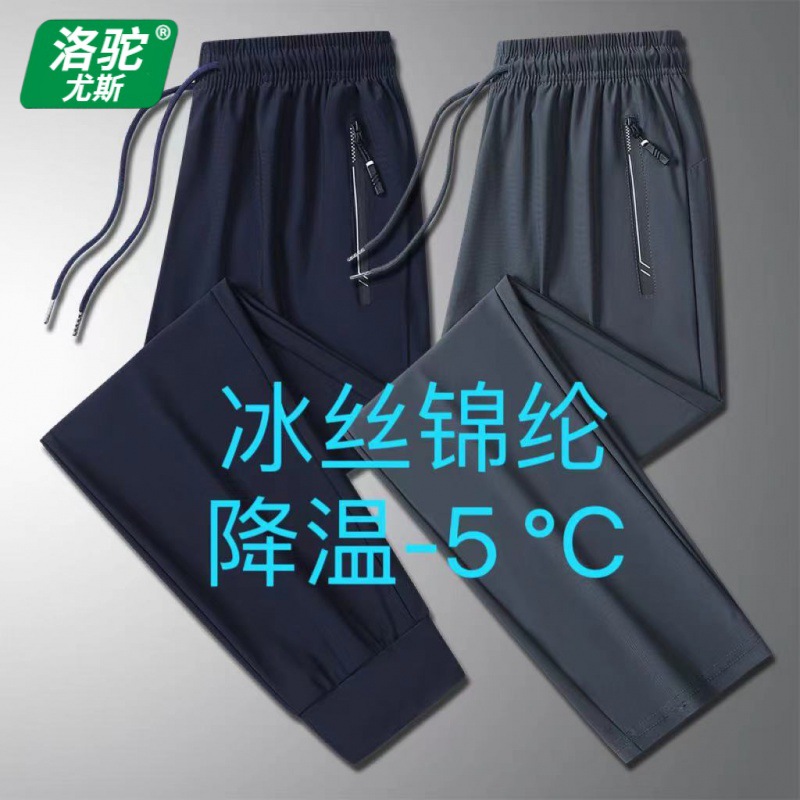 锦纶冰丝裤弹力M-8XL束脚裤大码男款韩版休闲裤薄款透气运动裤