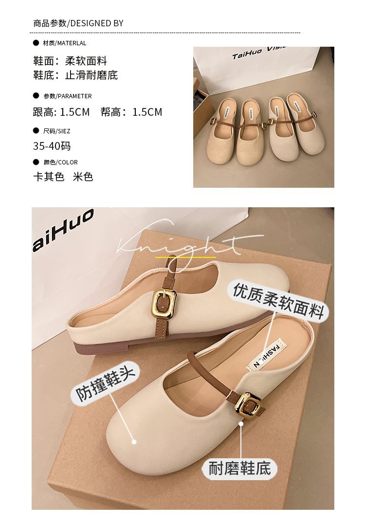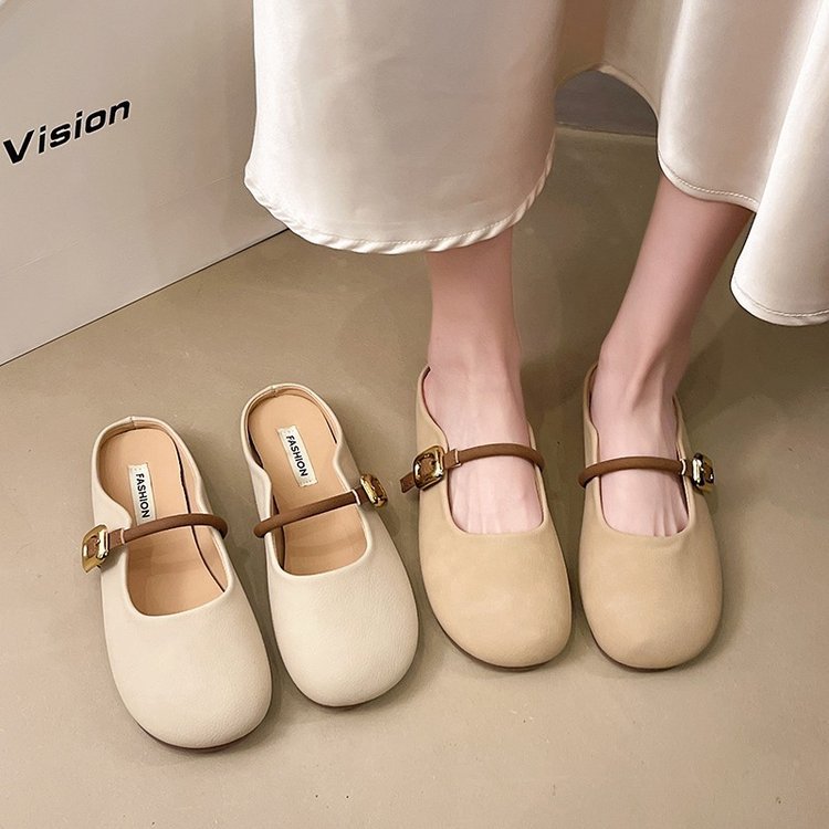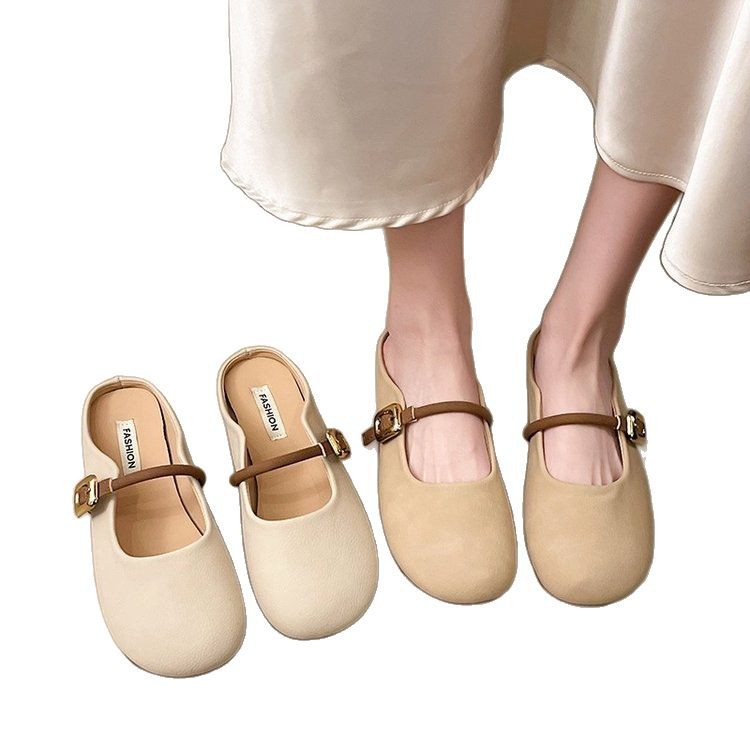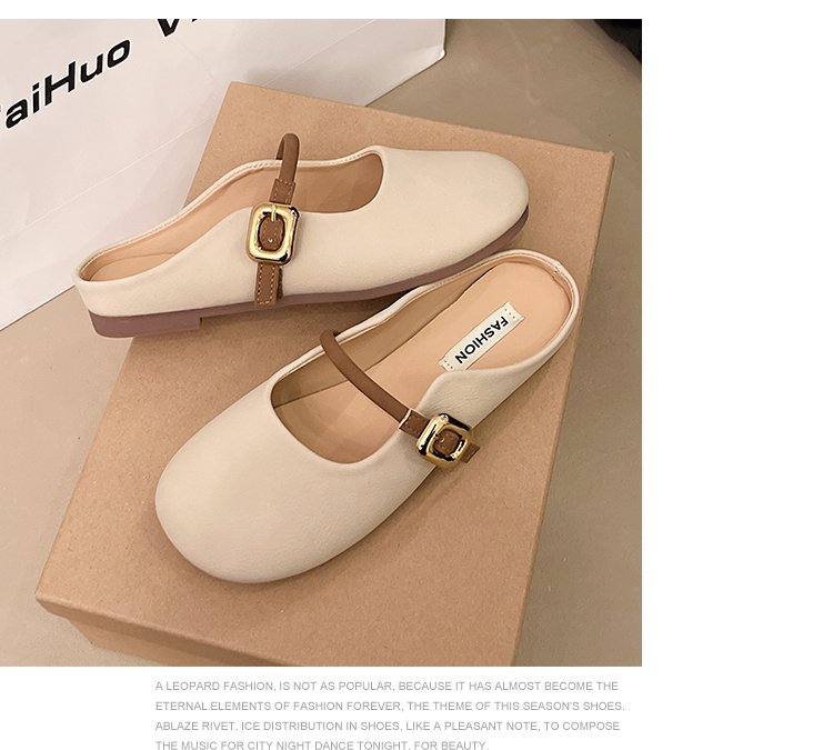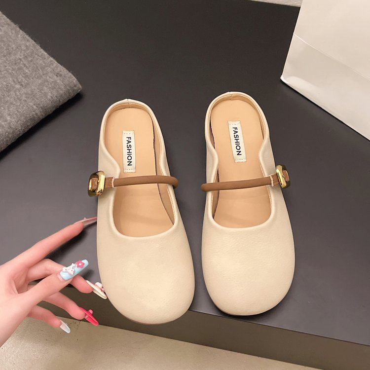 法式小香风包头半拖鞋女春夏新款一脚蹬懒人孕妇软底配裙子包头拖