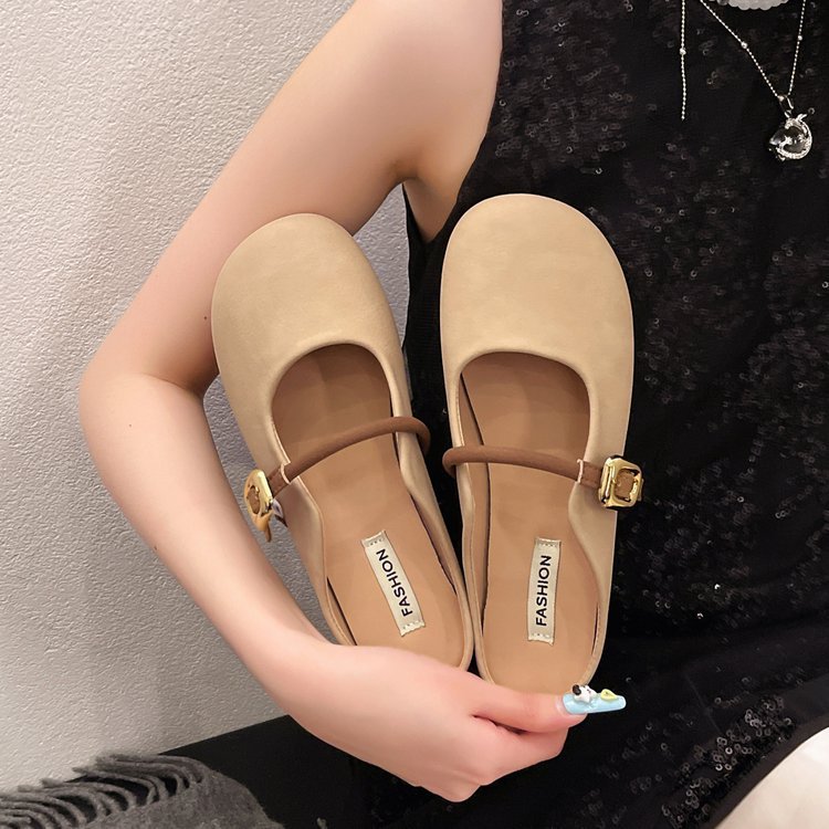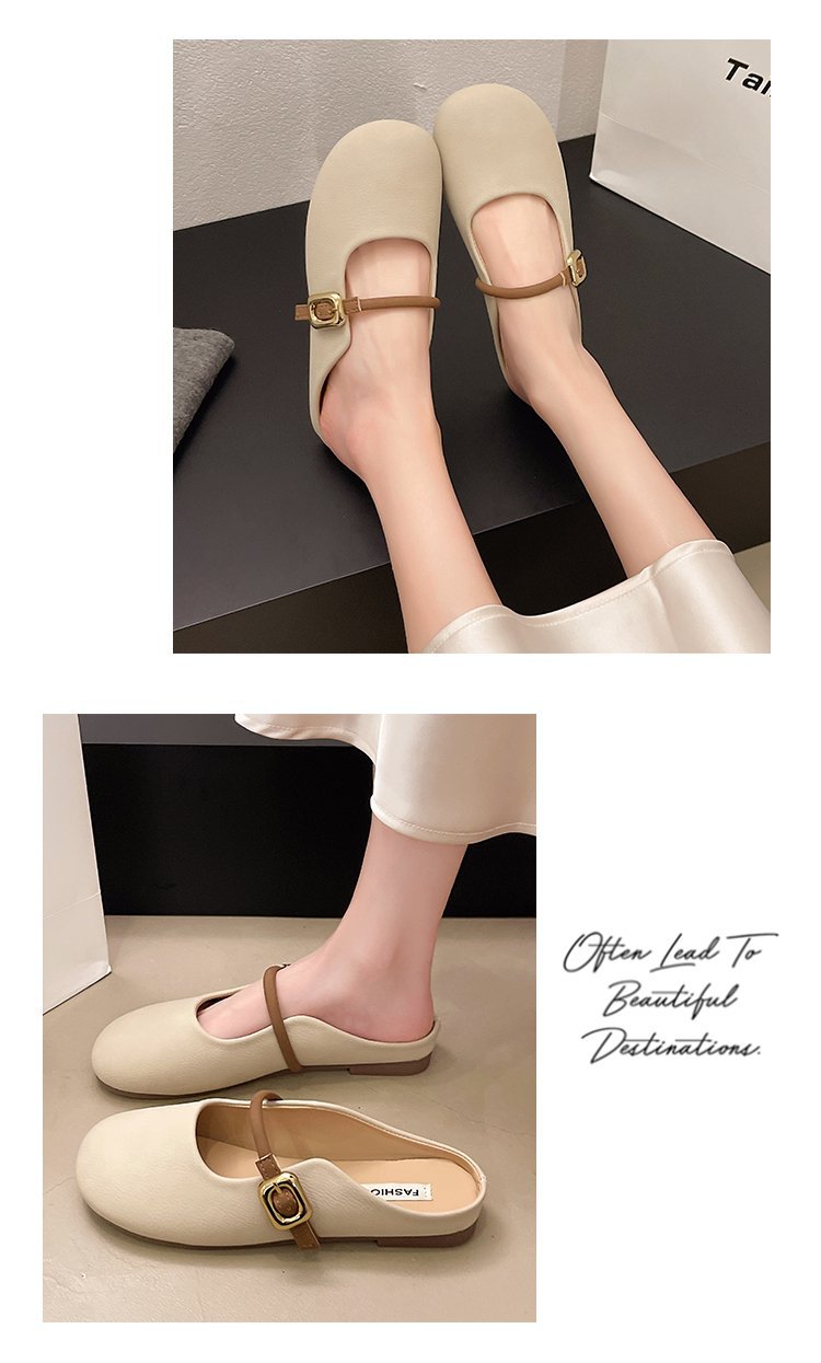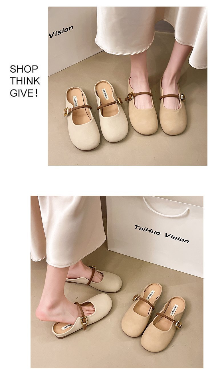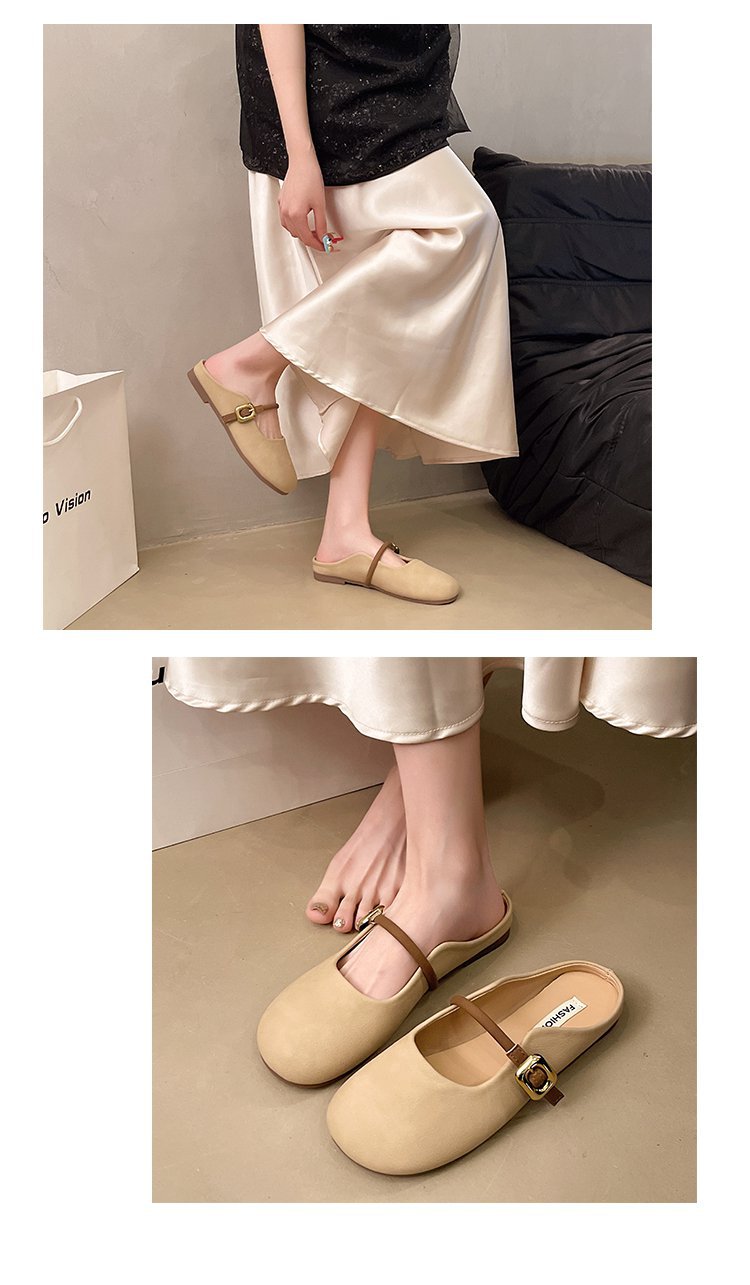 法式小香风包头半拖鞋女春夏新款一脚蹬懒人孕妇软底配裙子包头拖