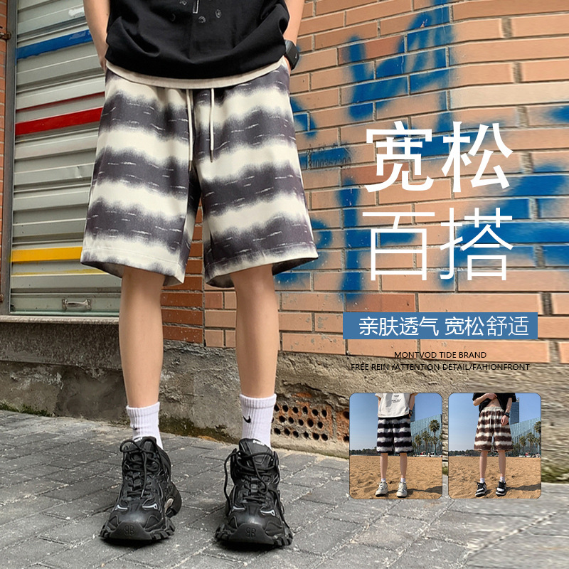 短裤男士新款潮牌青少年条纹百搭五分裤夏季薄款休闲中裤男士
