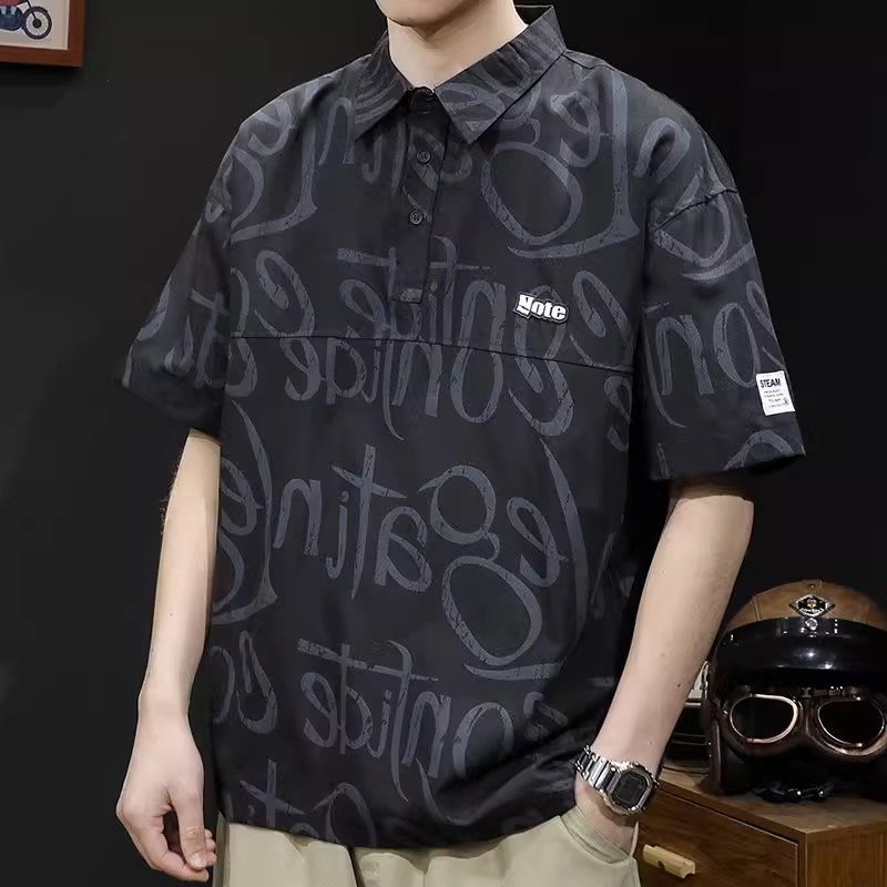 夏季短袖Polo衫男工装潮牌胖子大码宽松半袖冰丝薄款速干t恤衬衣