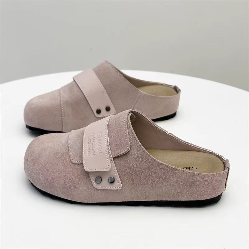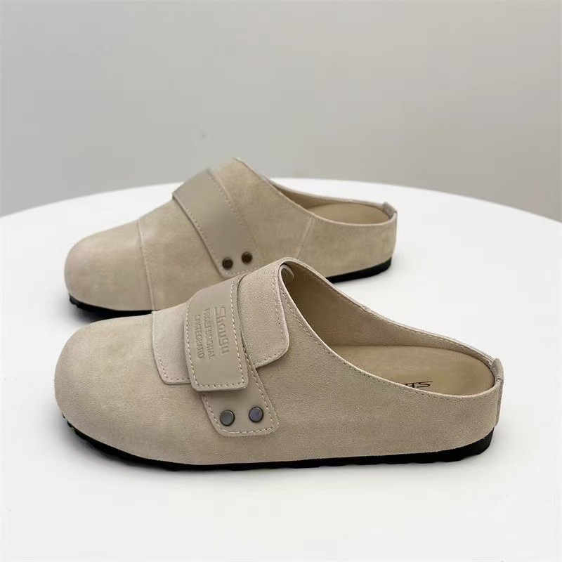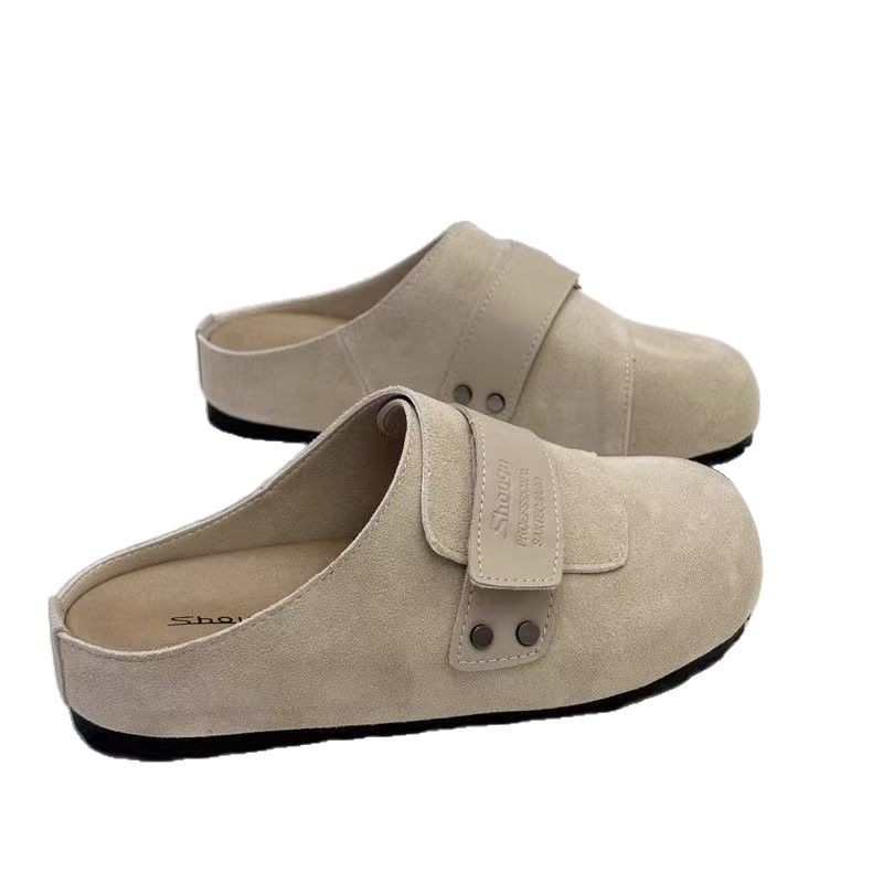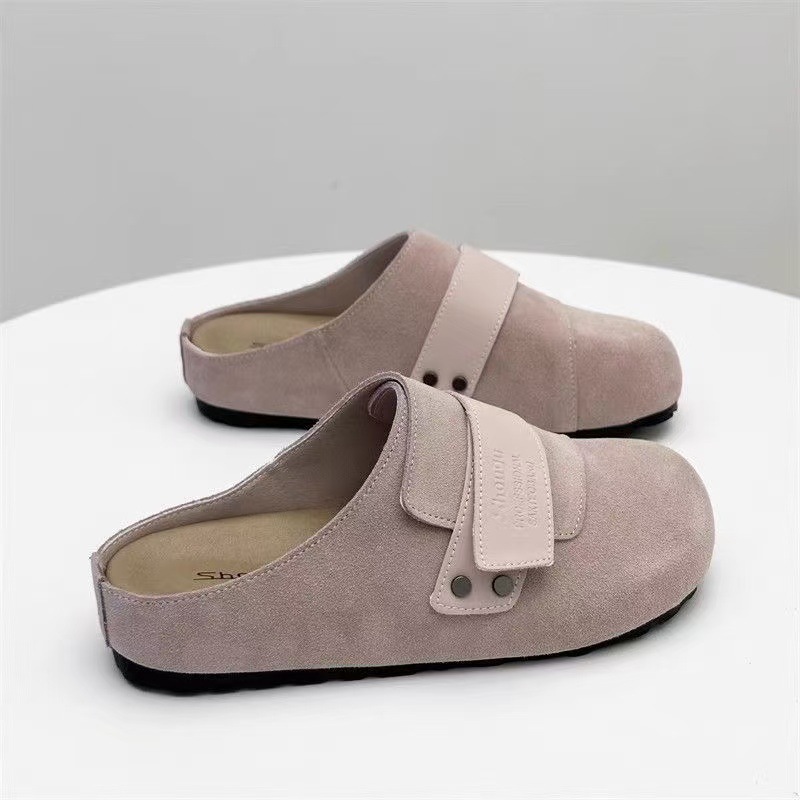 复古博肯半拖鞋女外穿厚底魔术贴2025新款芒果头一脚蹬德训包头拖