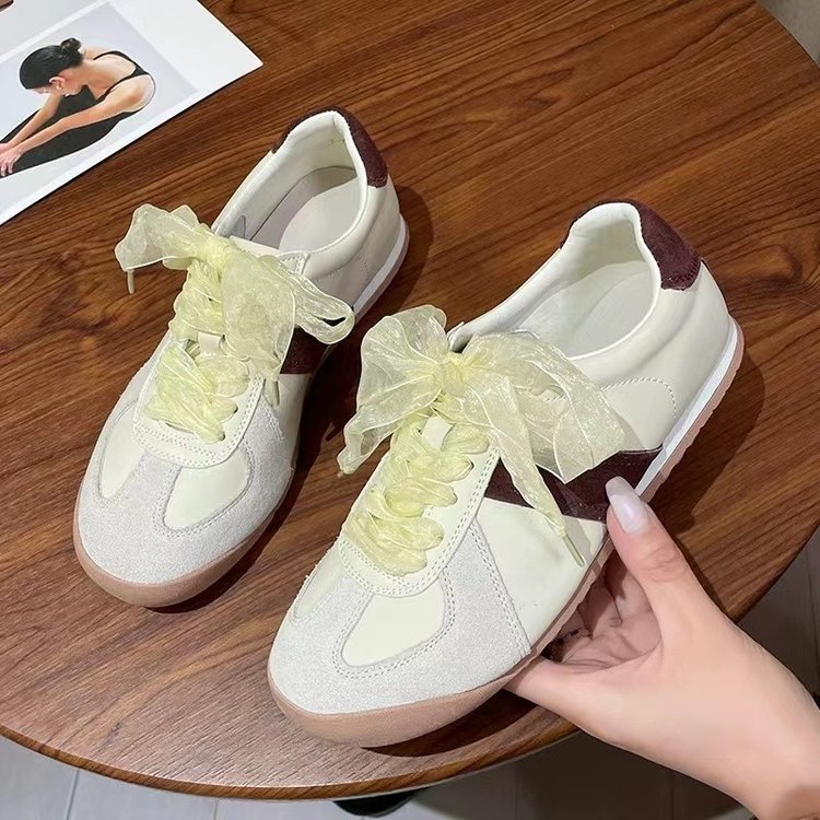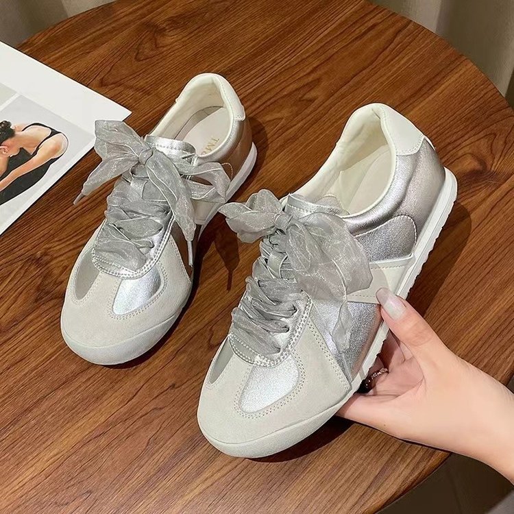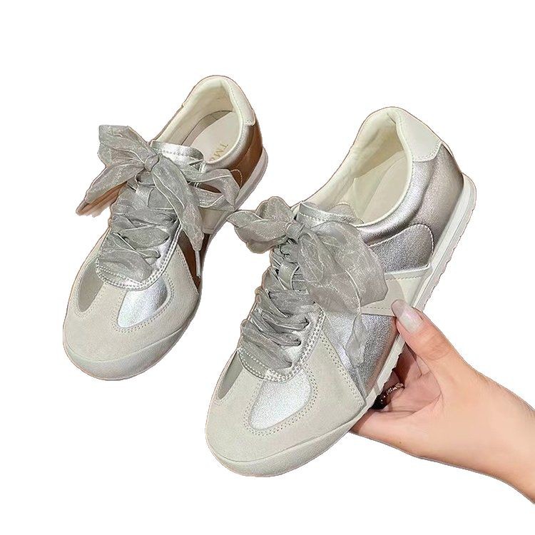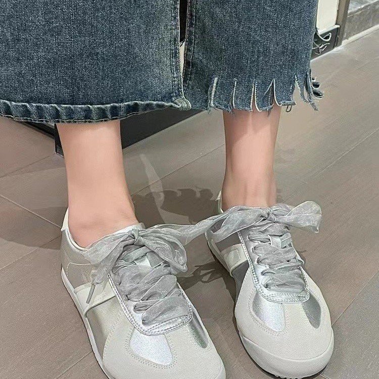 银色芭蕾德训鞋女2025年春夏季新款软皮小众复古百搭休闲运动板鞋