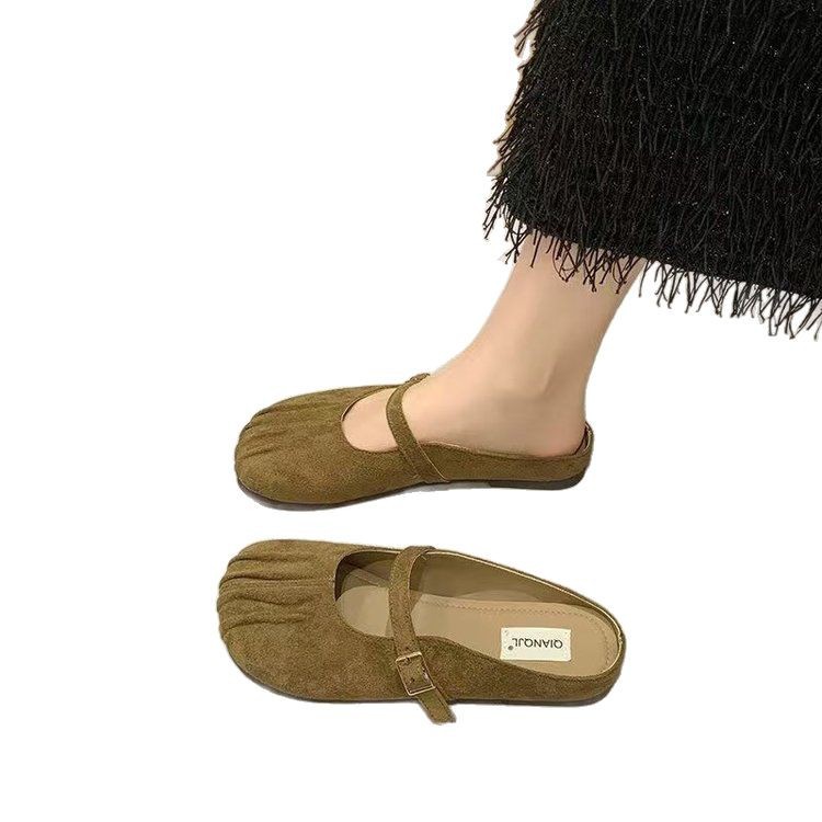 褶皱包头拖鞋女外穿2025春夏季新款复古一脚蹬平底无后跟半拖女鞋