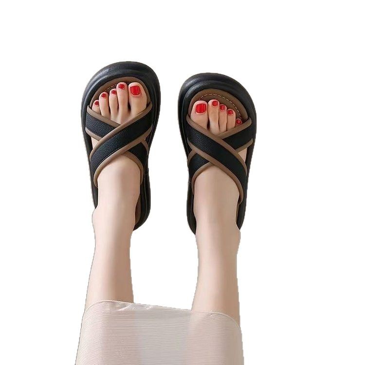 韩版厚底拖鞋女夏季外穿2025年新款高级感百搭一字拖配裙子沙滩鞋