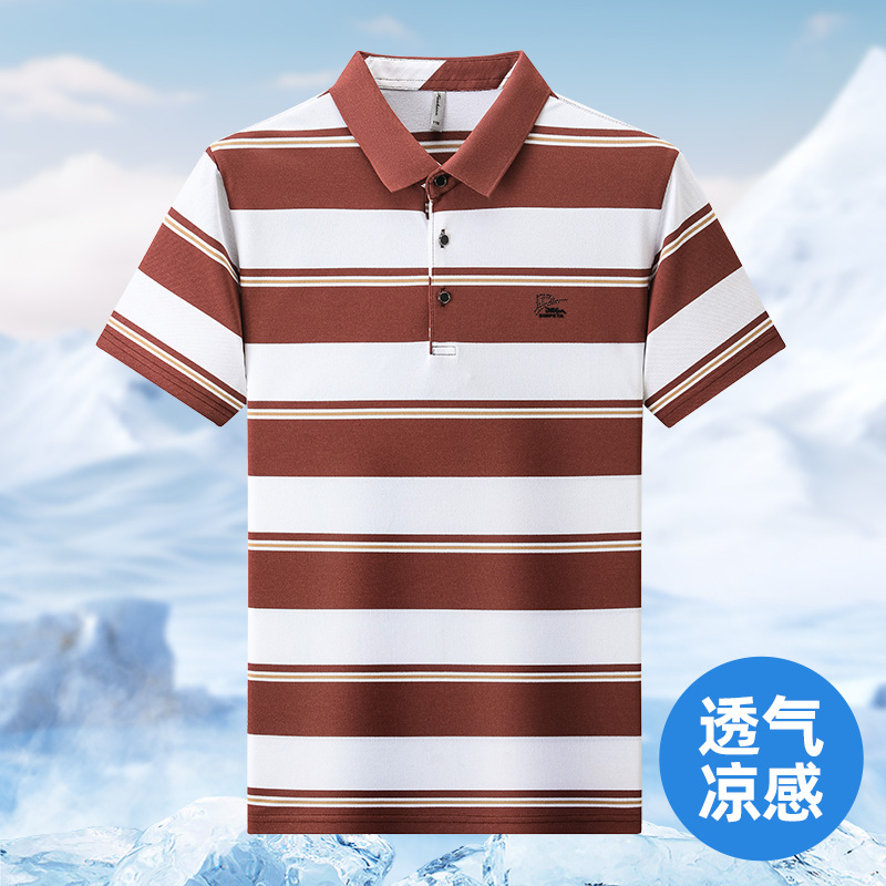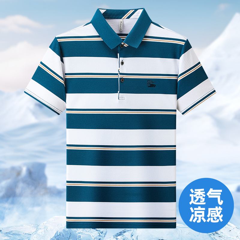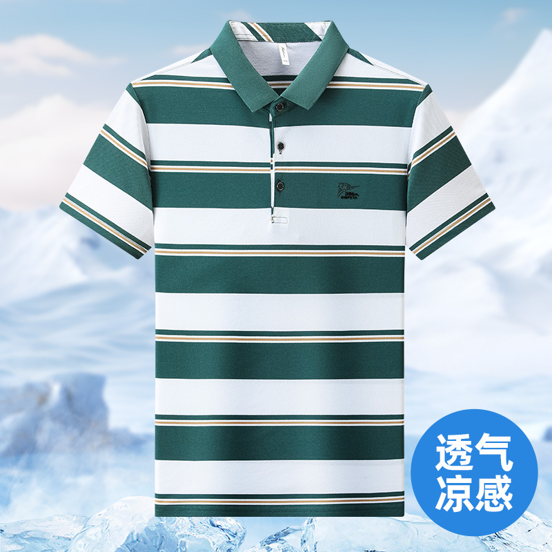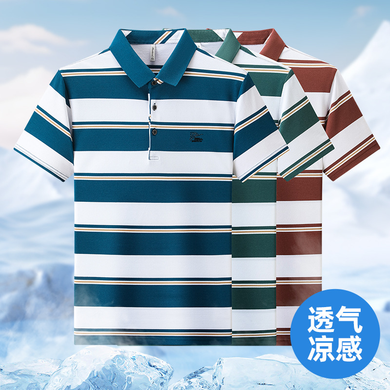 2025年夏季新款纯棉短袖男士t恤条纹休闲翻领大码男式POLO衫